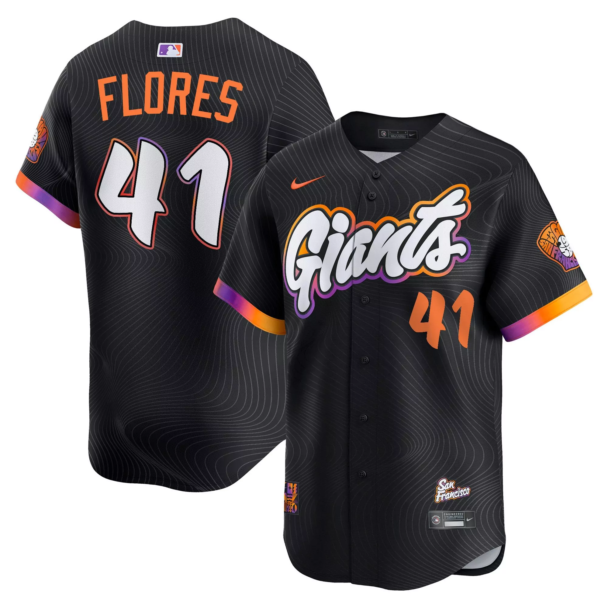 Wilmer Flores 41 San Francisco Giants Black Stitched Jersey Men...