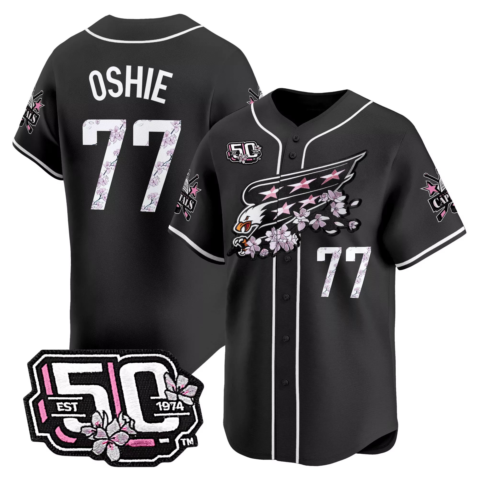 Oshie 77 Washington Capitals Black Vapor Jersey With 50Th Anniversary...