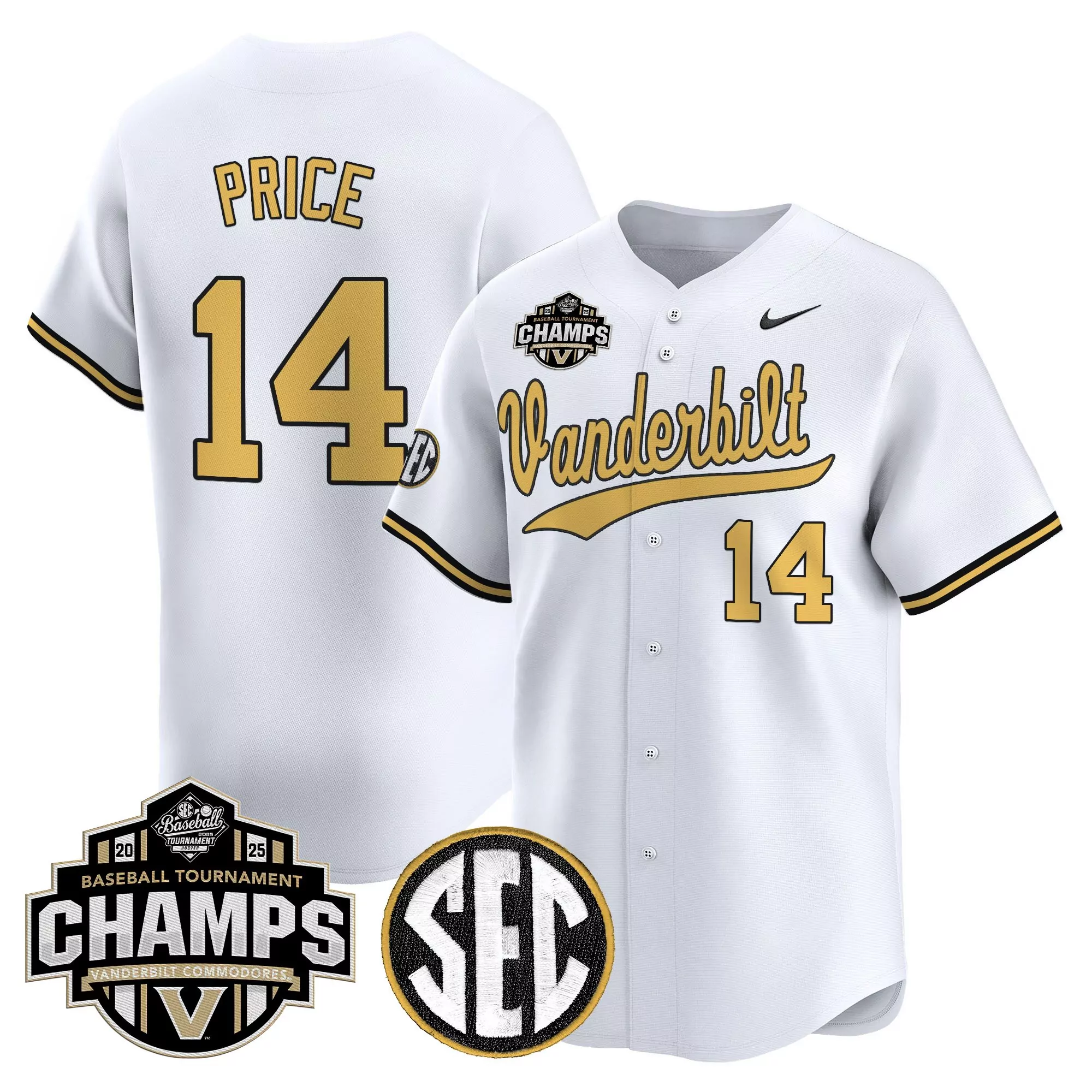 Vanderbilt Commodores Men S Stitched Vapor Jersey White 2025 Sec...