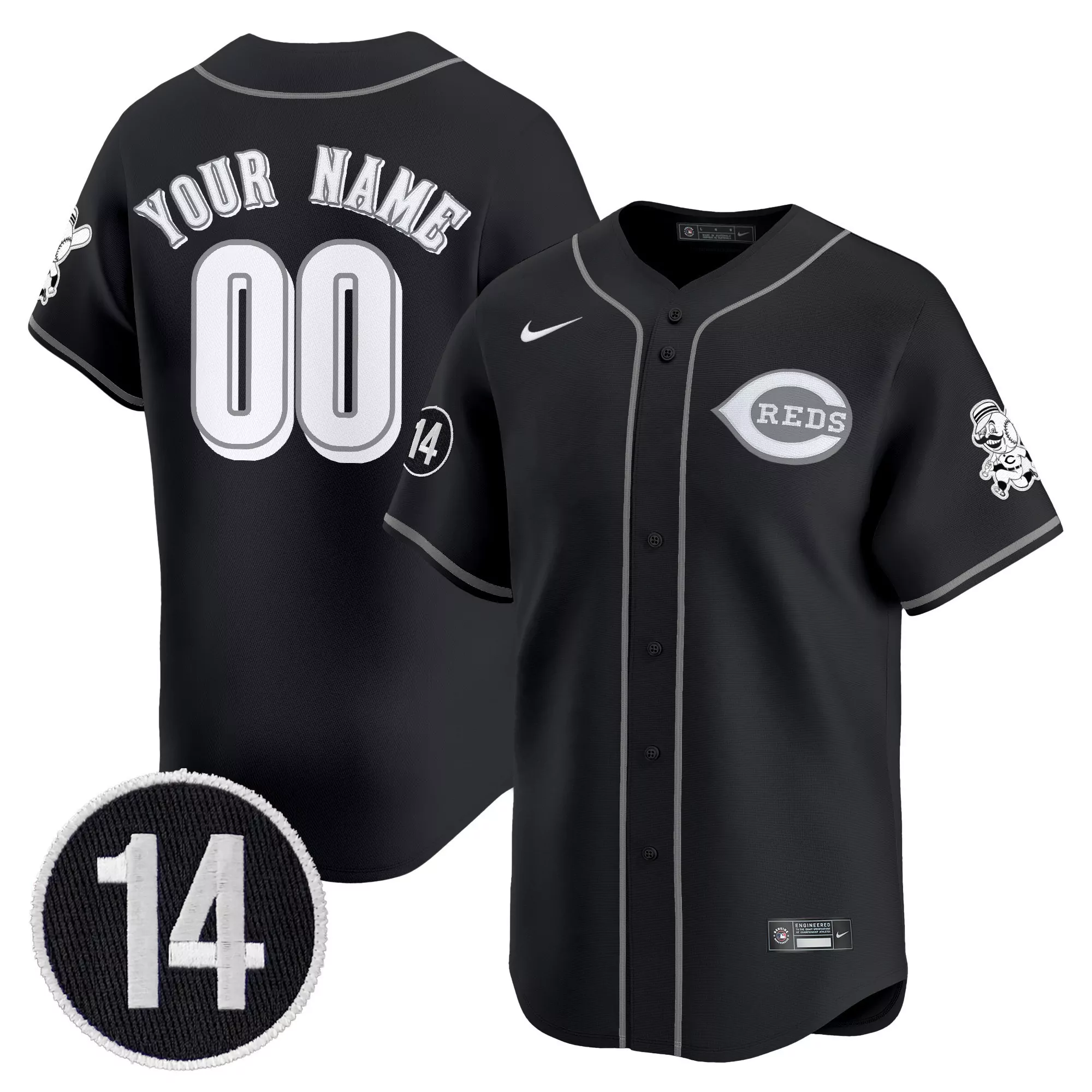 Cincinnati Reds Black Jersey With Custom Name And Number 00...