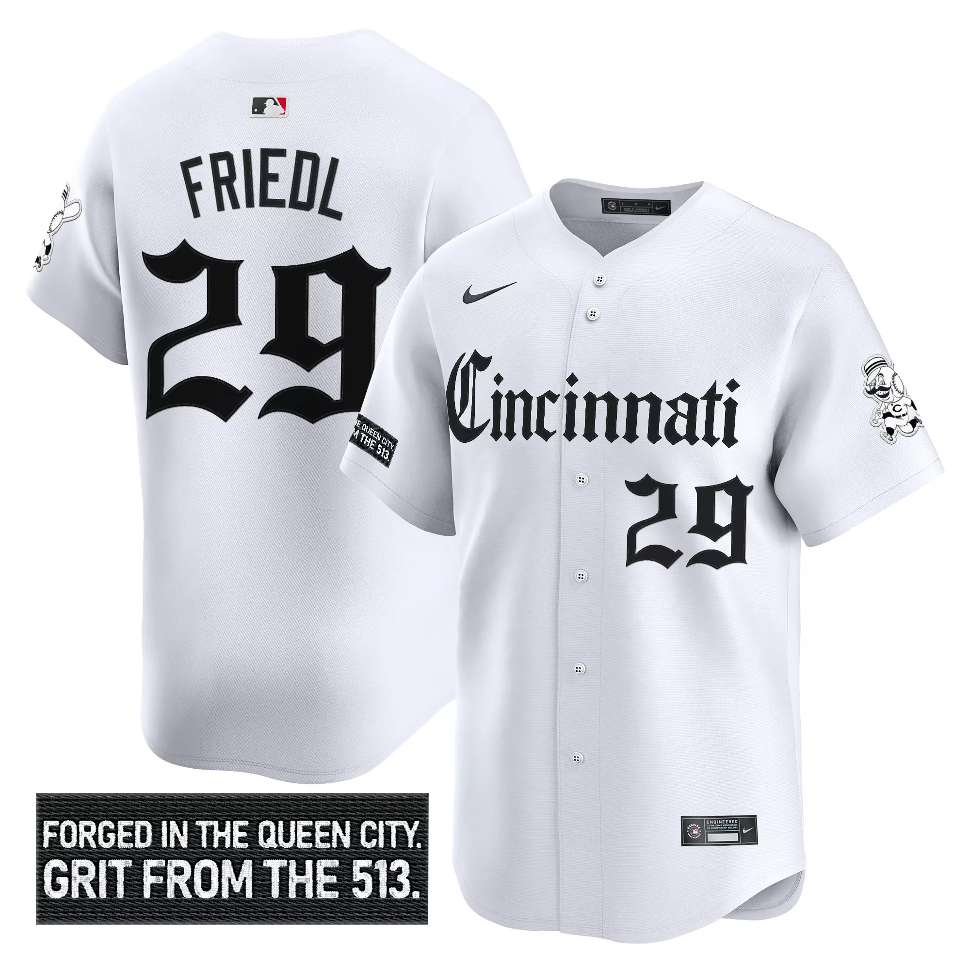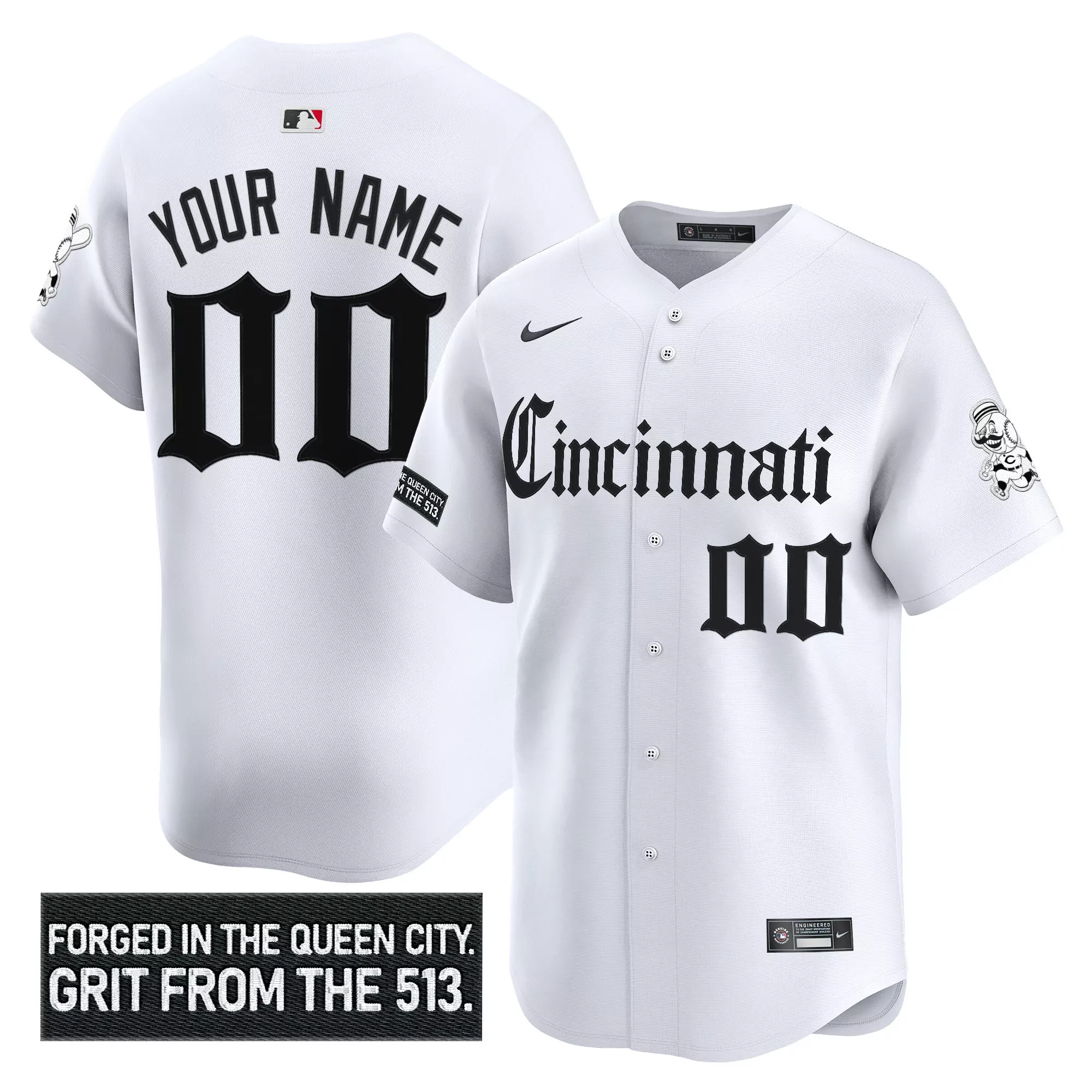 Cincinnati Reds Custom Jersey White Black Mlb Personalized Shirt