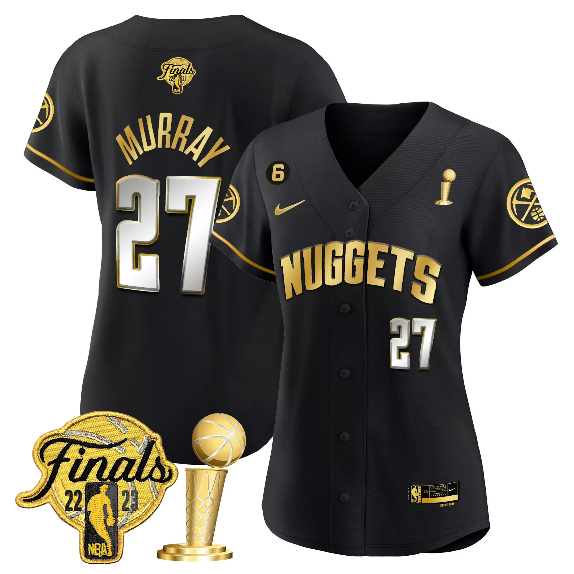 murray 27 denver nuggets 2023 women s black all stitched...