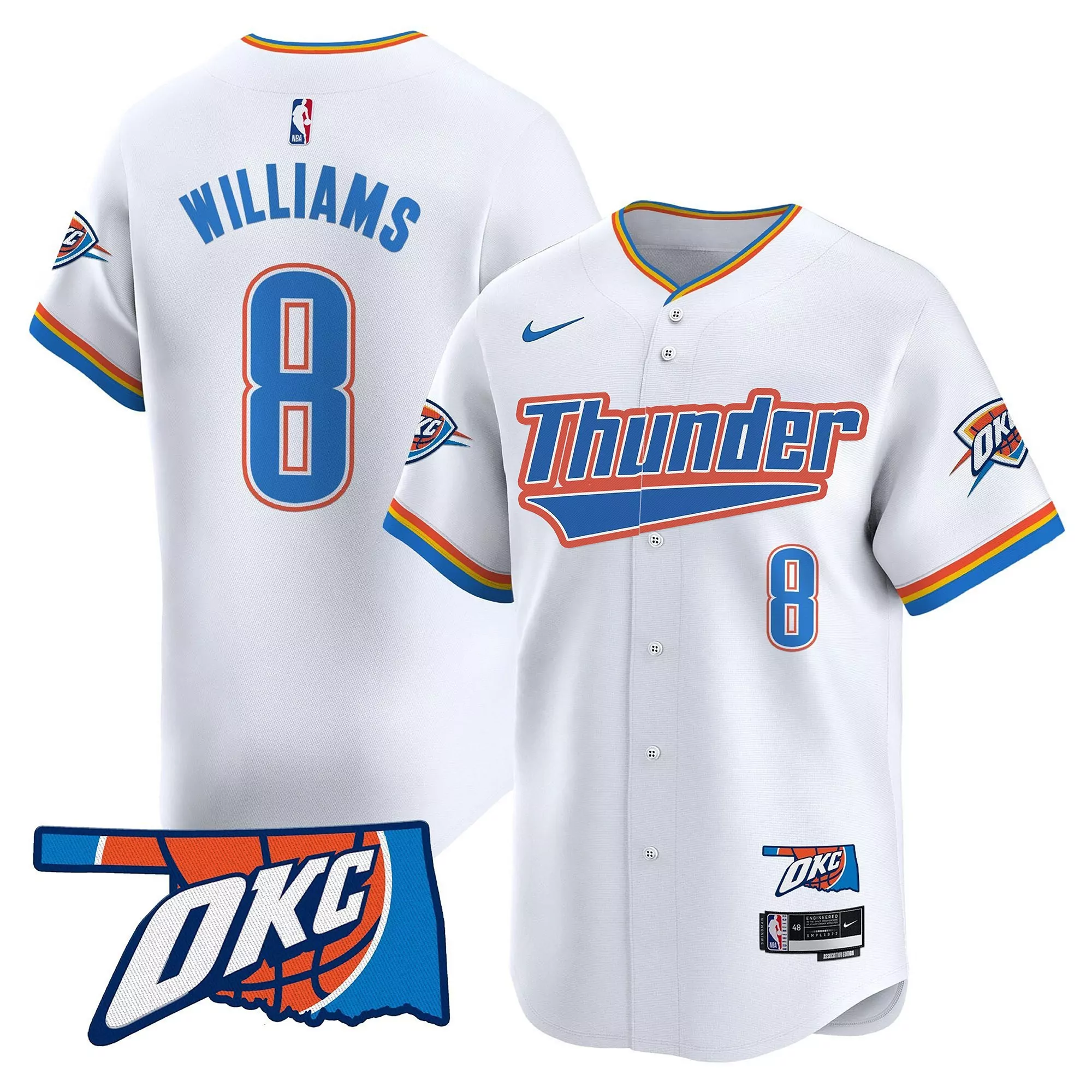 williams 8 men s oklahoma city thunder vapor baseball jersey...