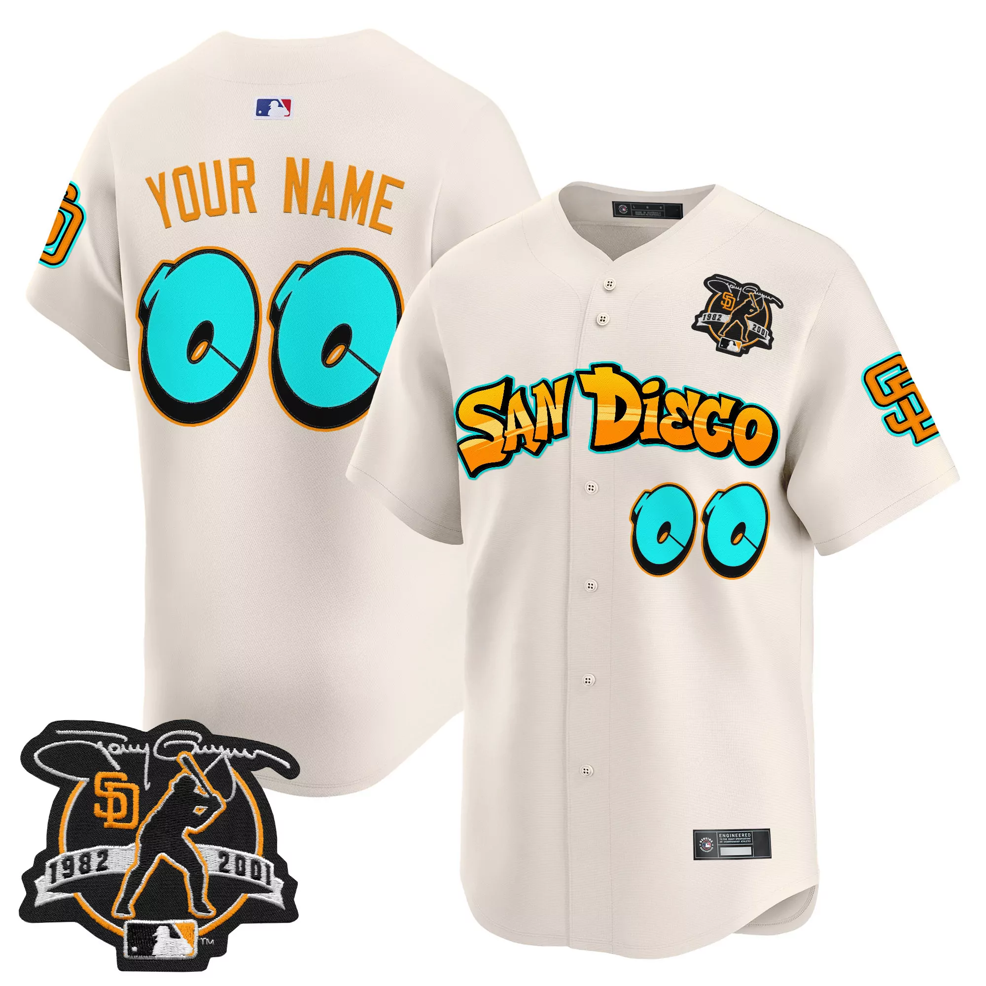 your name 00 san diego padres 2023 vapor jersey cream...