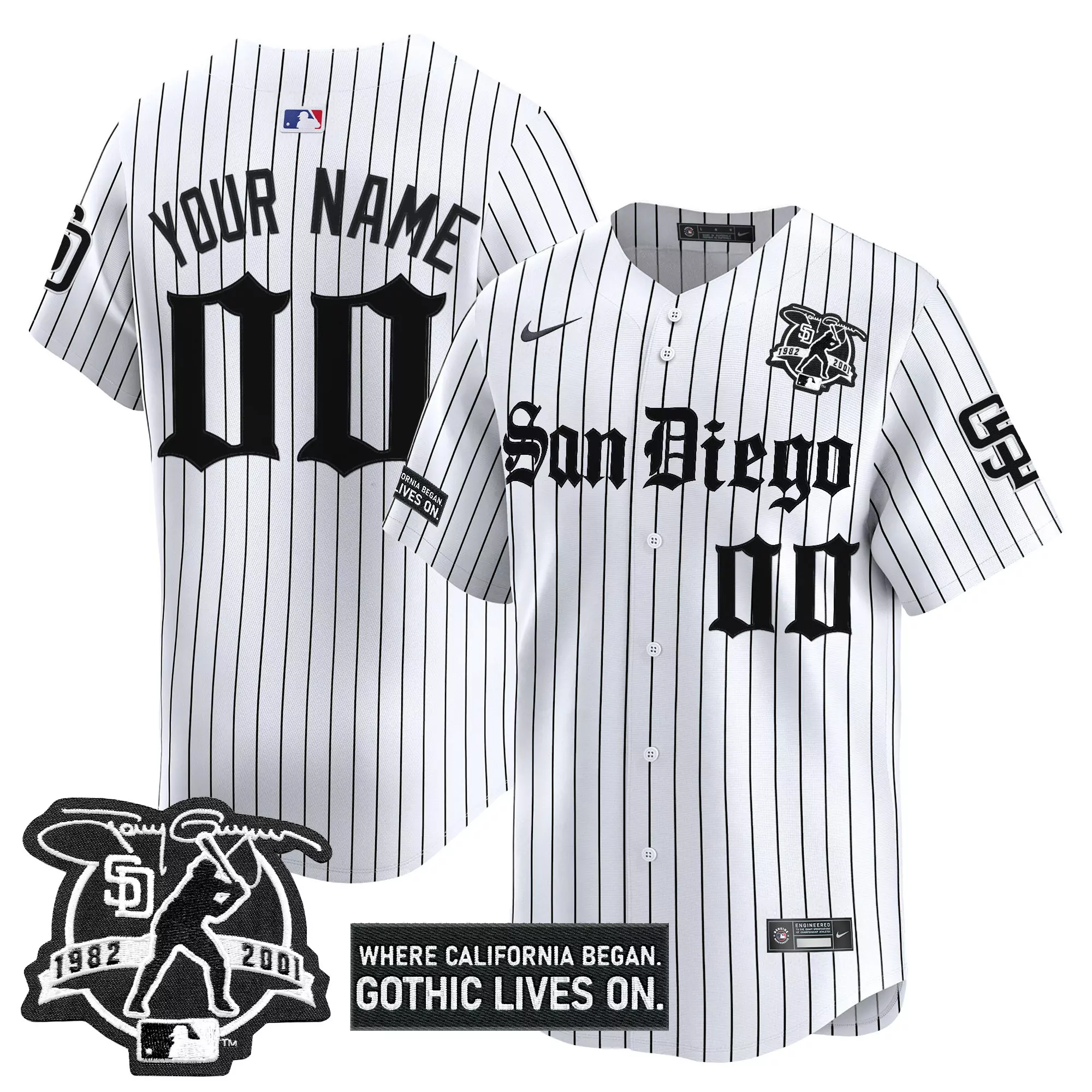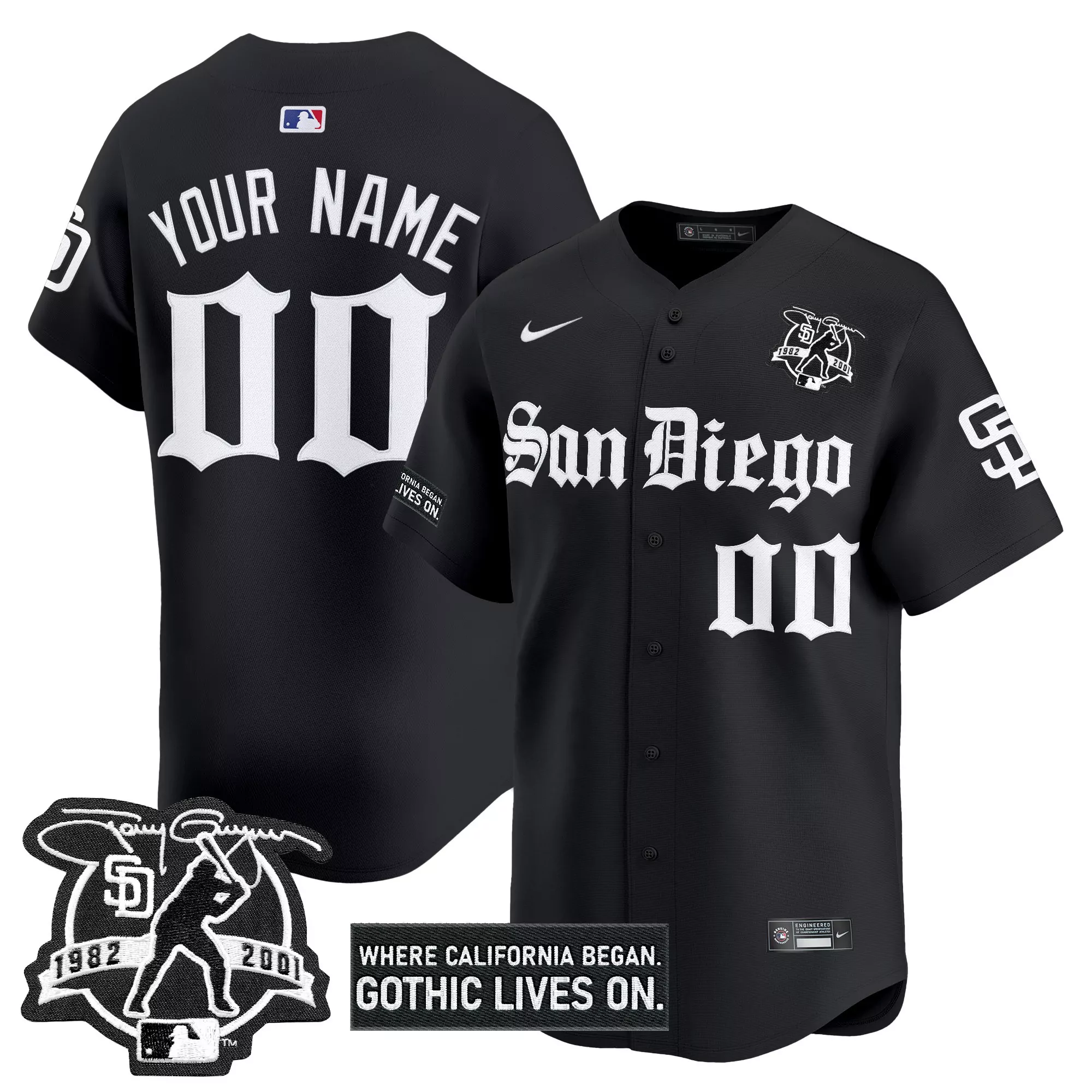 your name 00 san diego padres black vapor jersey gothic...