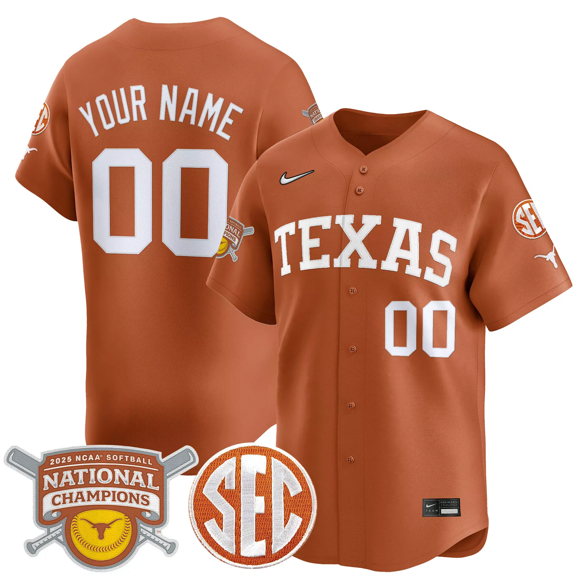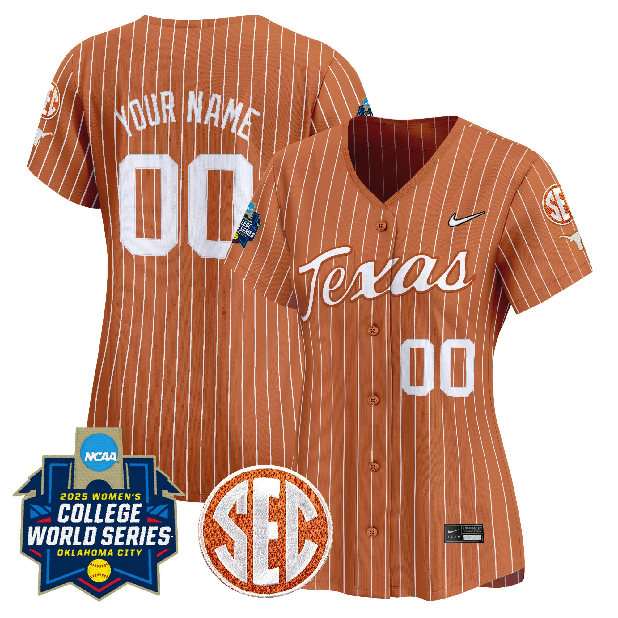 Your Name 00 Texas Longhorns Women S 2025 Vapor Jersey...
