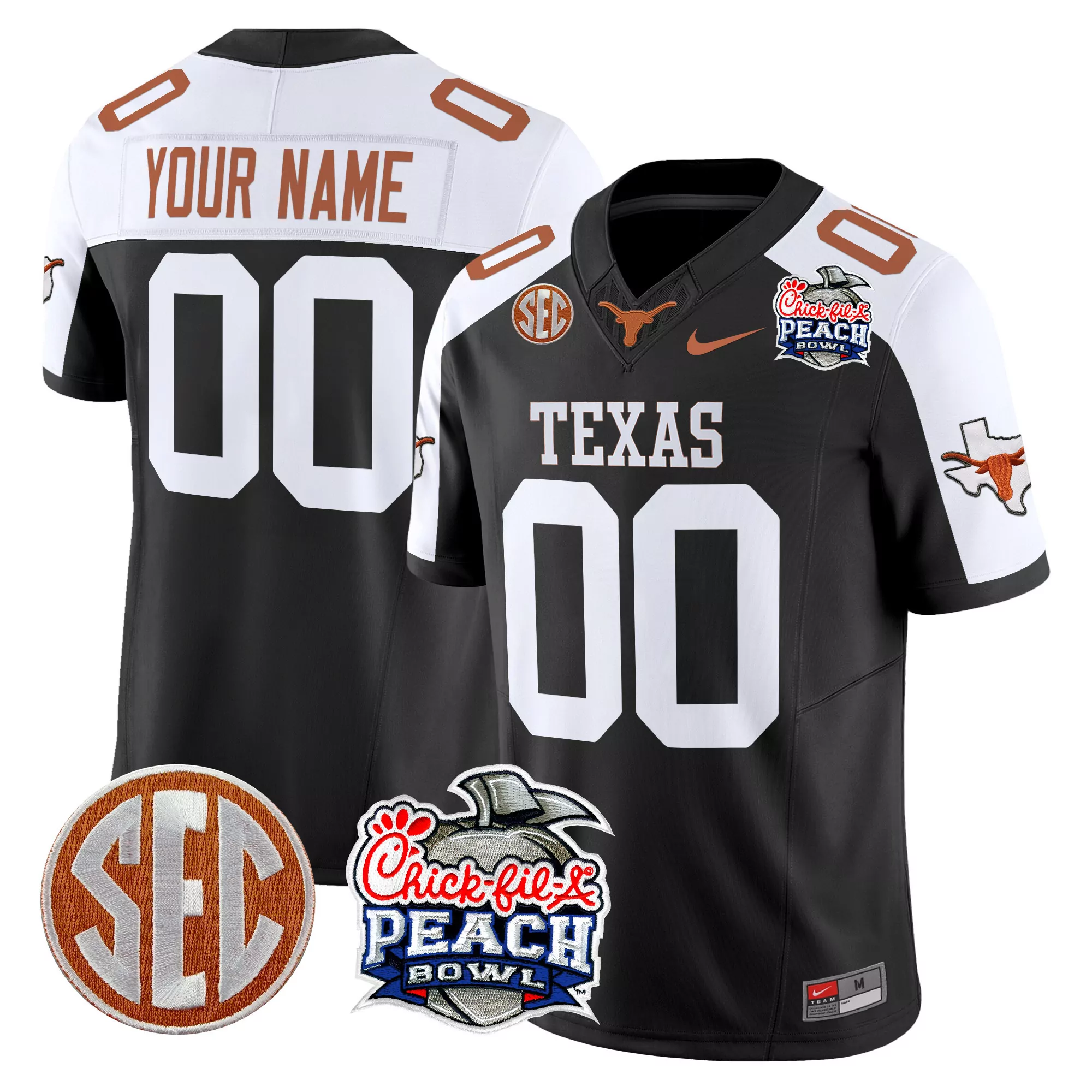 Your Name 00 Texas Longhorns Black Vapor Jersey Sec Peach...