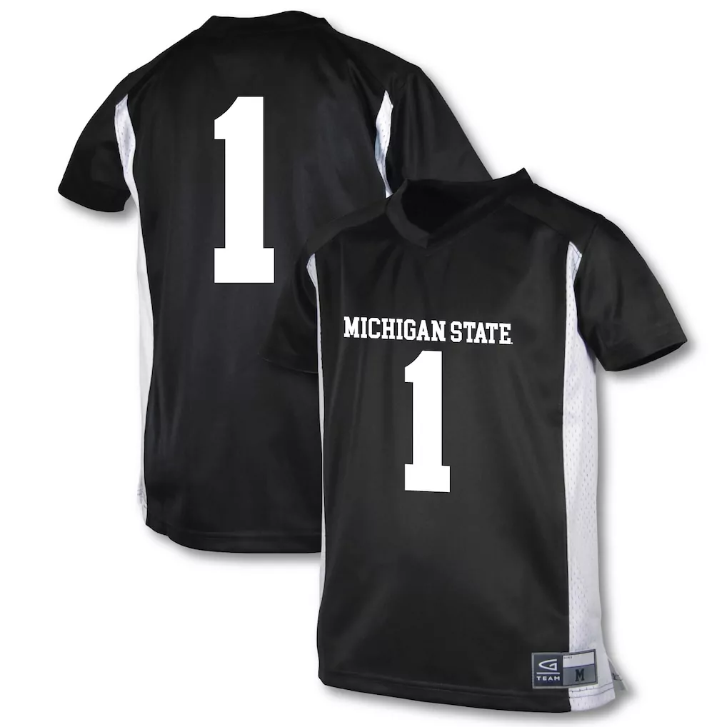 1 michigan state spartans gameday greats youth lightweight softball jersey white;1 michigan state spartans garb toddler football jersey black;1 michigan state spartans garb youth football jersey black;1 michigan state spartans jordan brand limited – jersey white;1 michigan state spartans nike alternate football game jersey black
