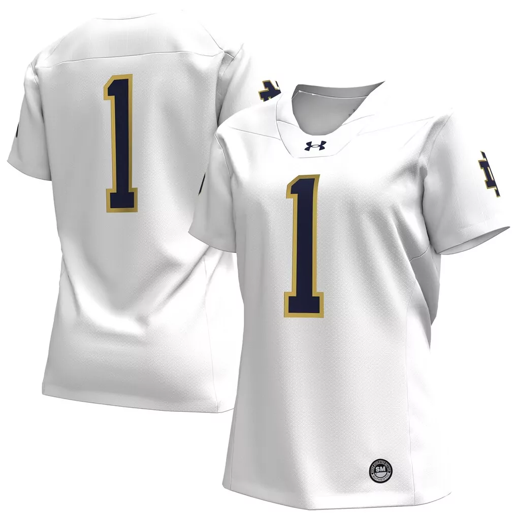 1 notre dame fighting irish under armour replica football jersey white;1 notre dame fighting irish under armour team wordmark replica football jersey white;1 notre dame fighting irish under armour women s replica football jersey kelly green;1 notre dame fighting irish under armour women s replica football jersey navy;1 notre dame fighting irish under armour women s replica football jersey white