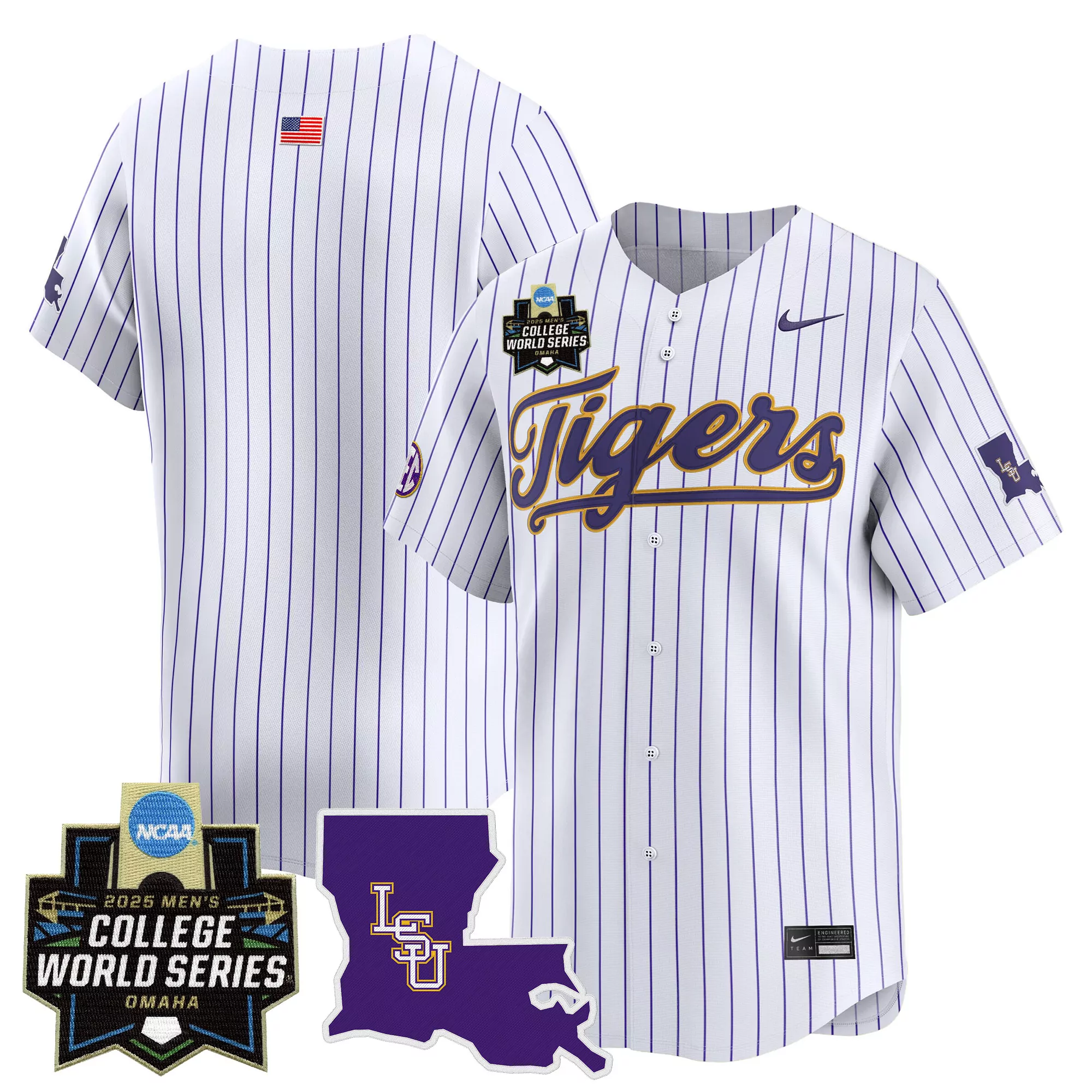 2025 Lsu Tigers Men S Vapor Jersey White Striped College World Series Edition;2025 Lsu Tigers Men S Vapor Premier Limited Jersey Stitched White Pinstripe College World Series Patch;2025 Lsu Tigers Women S Purple Vapor Premier Stitched Jersey College World Series Patch;2025 Lsu Tigers Women S Vapor Jersey Gray National Champions Embroidered Patch;2025 Lsu Tigers Women S Vapor Jersey White Black College World Series Patch Stitched