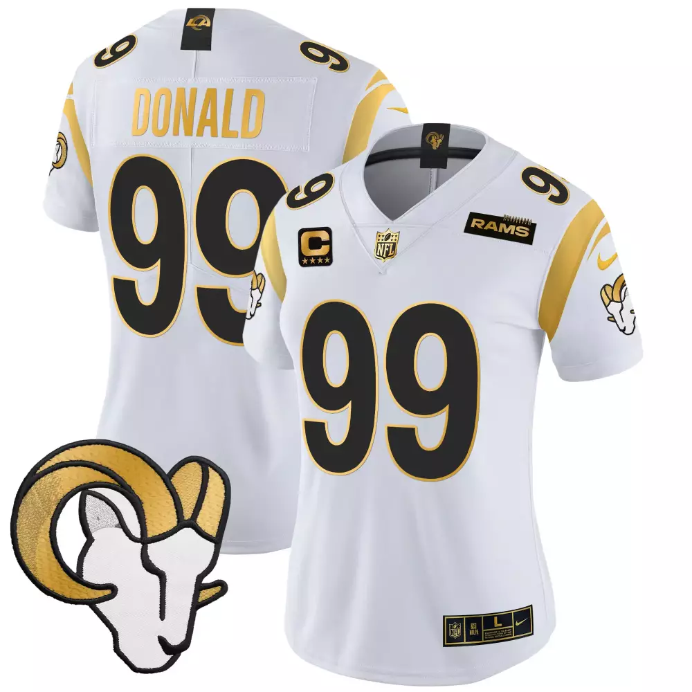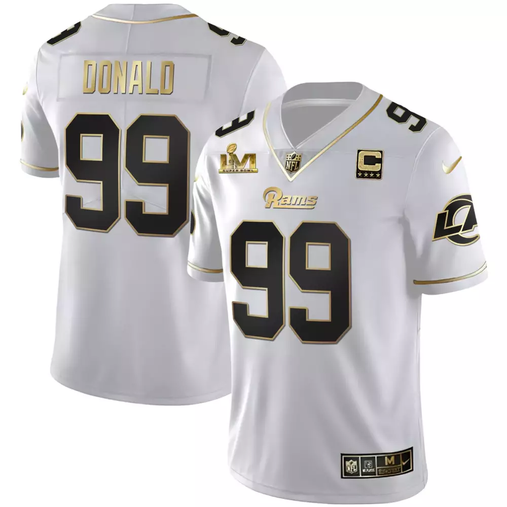 aaron donald royal womens los angeles rams vapor limited jersey v2 all stitched;aaron donald salute to service mens los angeles rams super bowl lvi black gold jersey all stitched;aaron donald white gold mens los angeles rams super bowl lvi white gold black gold jersey all stitched;aaron donald white gold mens los angeles rams white gold black gold jersey all stitched;aaron donald white gold womens los angeles rams 2024 gold vapor limited jersey all stitched