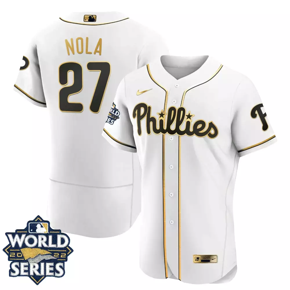 aaron nola flex red mens philadelphia phillies 2023 postseason patch jersey all stitched;aaron nola flex red mens philadelphia phillies gold trim jersey all stitched;aaron nola flex white mens philadelphia phillies 2023 postseason patch jersey all stitched;aaron nola flex white mens philadelphia phillies gold 2022 world series jersey all stitched;aaron nola flex white mens philadelphia phillies gold 2022 world series jersey limited all stitched