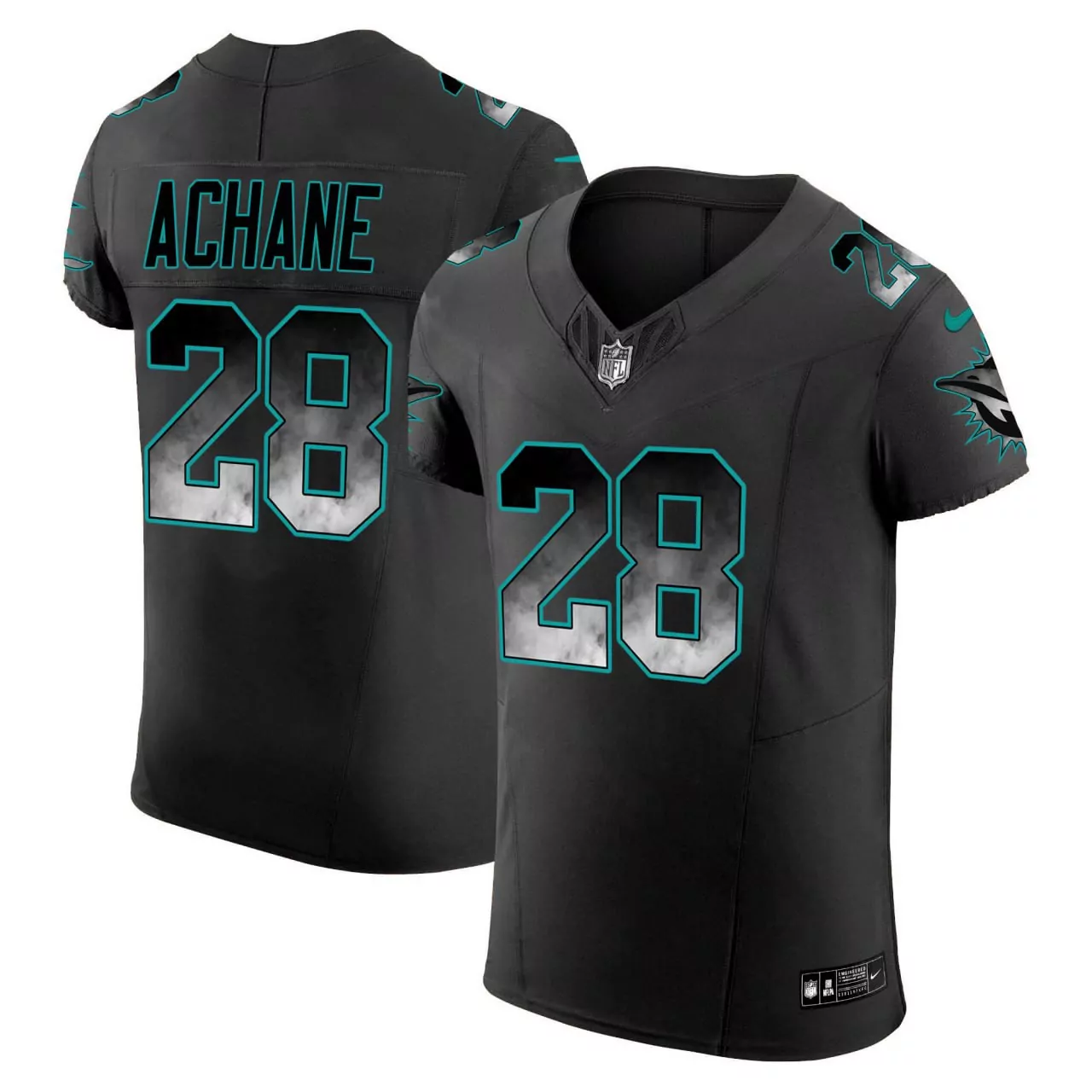 achane 28 miami dolphins 2023 men s all stitched vapor jersey black turquoise limited edition go fins;achane 28 miami dolphins 2023 men s all stitched vapor jersey black with patch;achane 28 miami dolphins 2023 women s all stitched vapor jersey navy teal nfl edition;achane 28 miami dolphins charcoal gray stitched jersey men s 2023 name patch;alec ingold miami dolphins nike women s game player jersey aqua