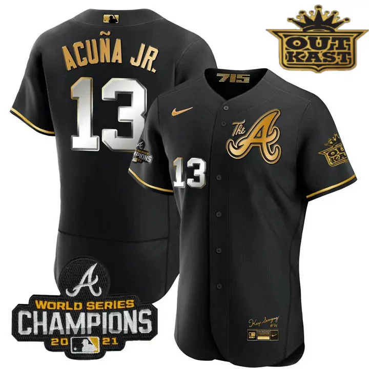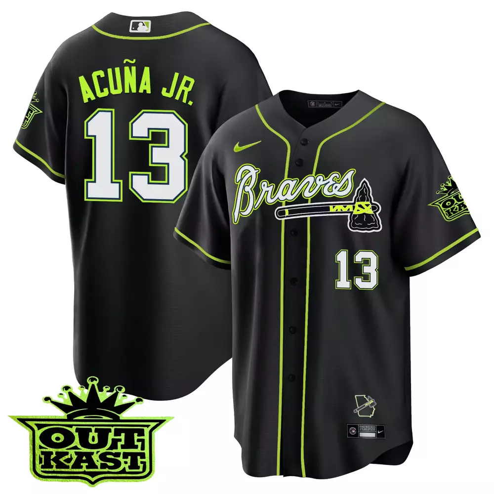 acua jr 13 atlanta braves black stitched jersey men s outkast style 2023 name patch