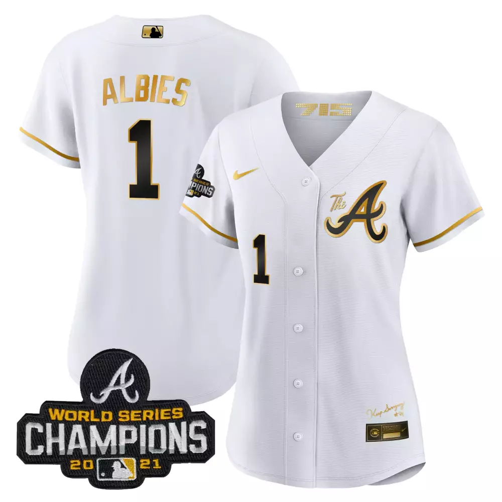 albies 1 atlanta braves 2021 women s all stitched vapor jersey white champions edition
