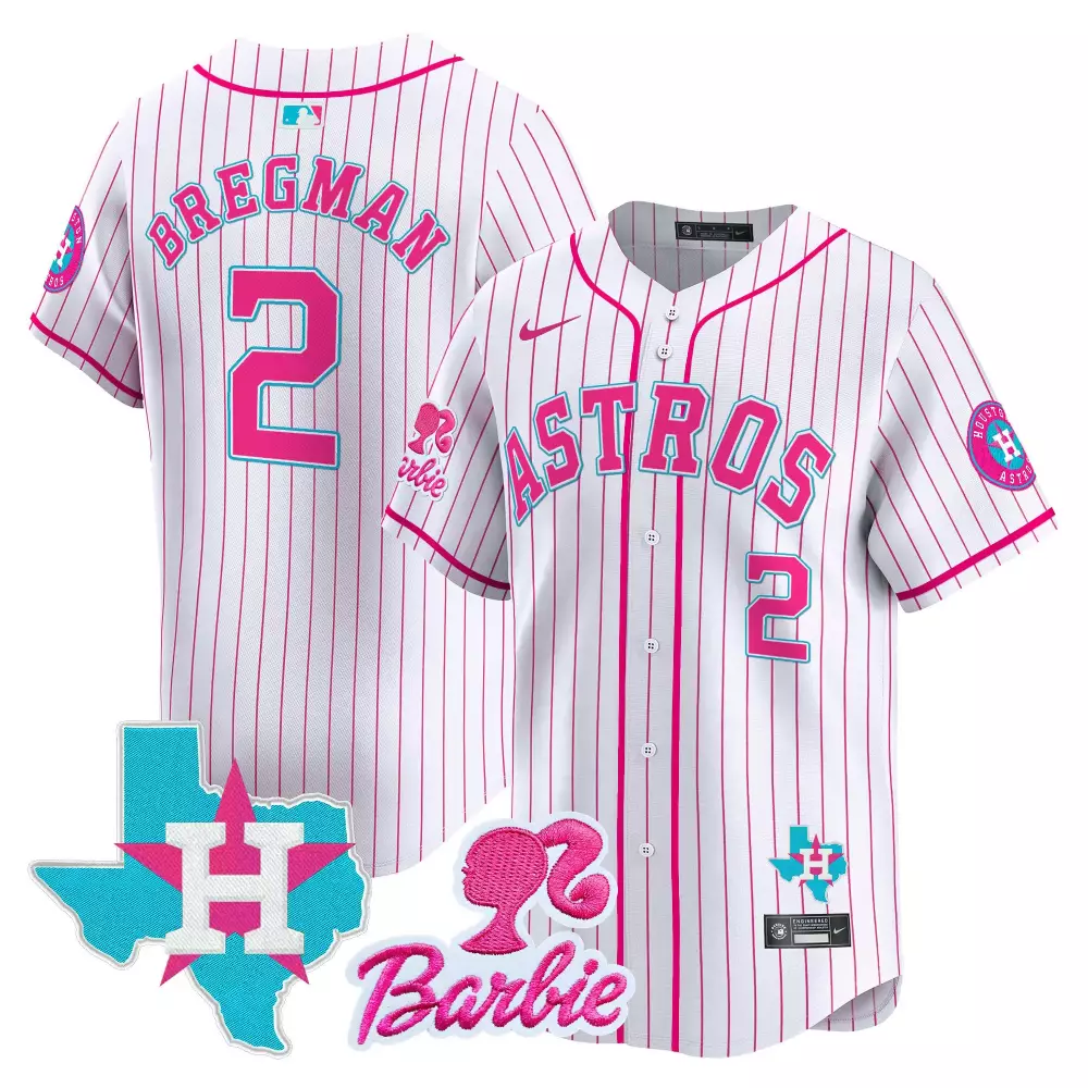 alex bregman pink stripe unisex houston astros barbie patch vapor premier limited jersey all stitched;alex bregman pink stripe womens houston astros barbie patch vapor premier limited jersey all stitched;alex bregman pink unisex houston astros barbie patch vapor premier limited jersey all stitched;alex bregman pink unisex houston astros barbie vapor premier limited jersey all stitched;alex bregman pink unisex houston astros bubblegum pink vapor premier limited jersey all stitched
