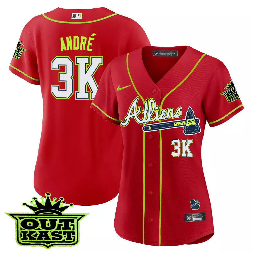 andr 3k atlanta braves women s red stitched jersey name patch 2023 outkast style