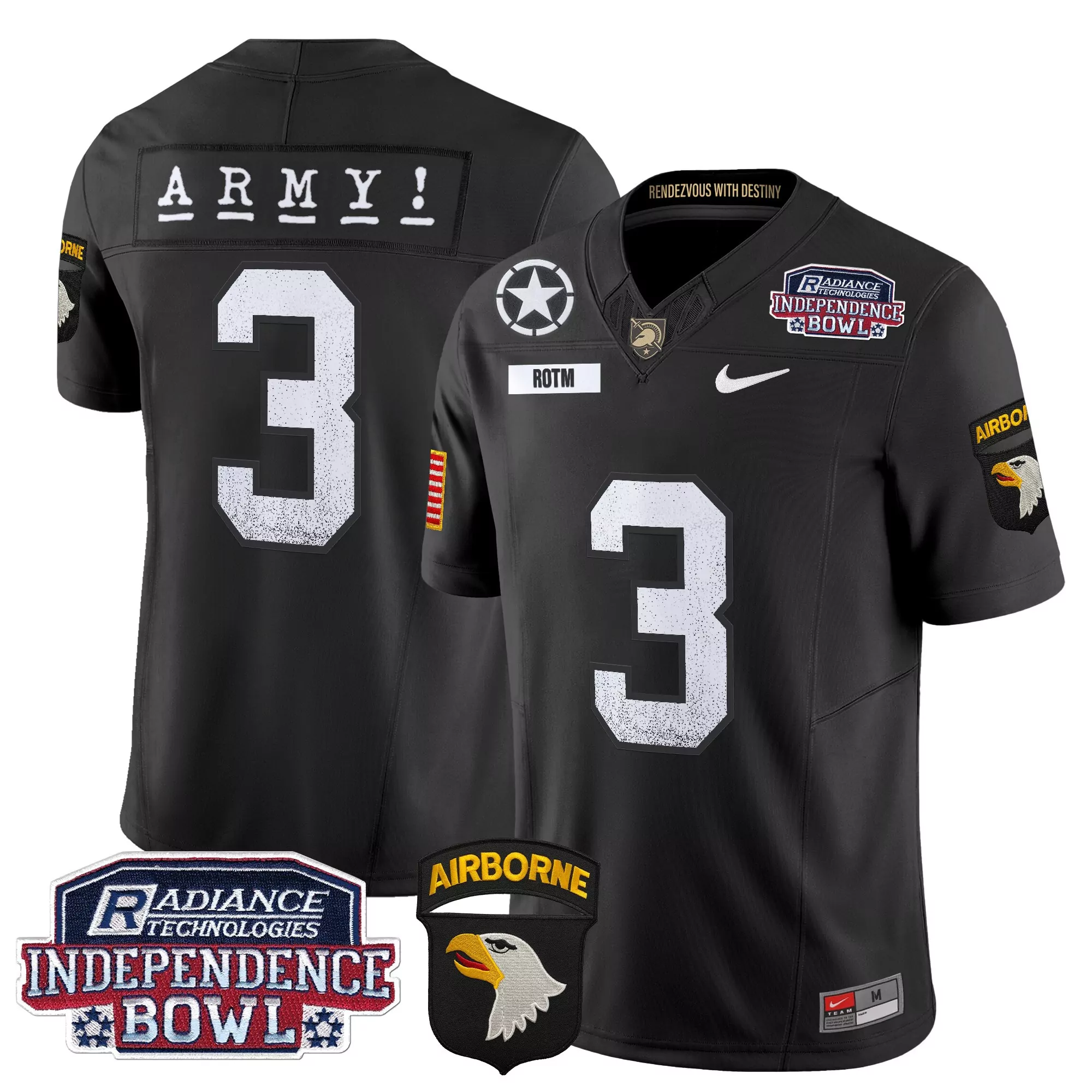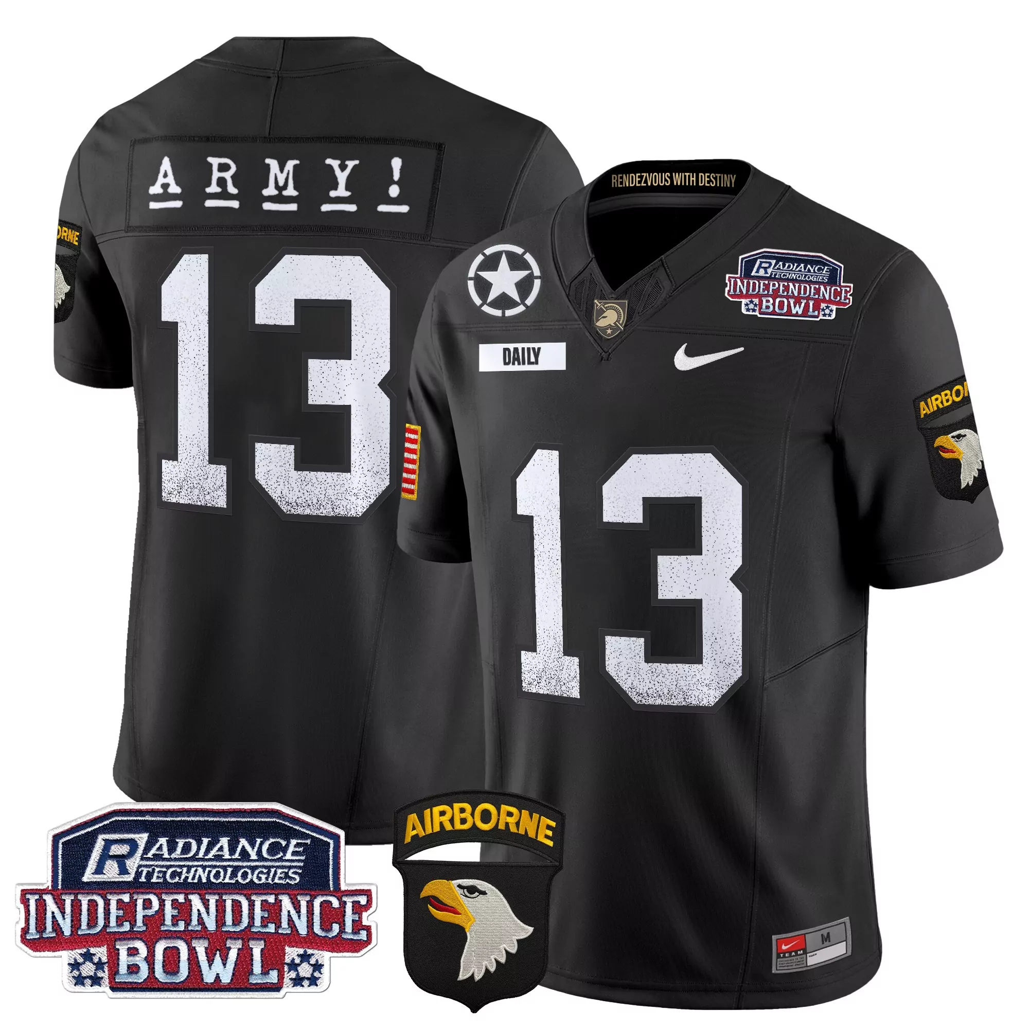 Army Black Knights Men’S Black All Stitched Jersey With Name Patch 2024 Independence Bowl 47