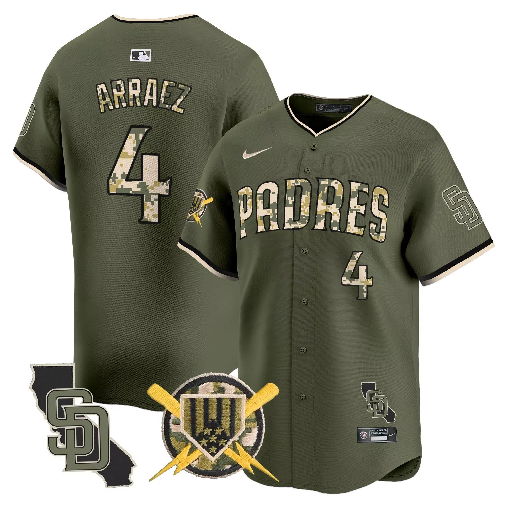 arraez 4 men s stitched vapor jersey san diego padres 2025 mexican heritage white;arraez 4 men s stitched vapor jersey san diego padres armed forces day 2022 black jersey;arraez 4 men s stitched vapor jersey san diego padres armed forces day 2023 olive green;arraez 4 men s stitched vapor jersey san diego padres armed forces day 2025 gray;arraez 4 men s stitched vapor jersey san diego padres black 2025 limited edition embroidered patch