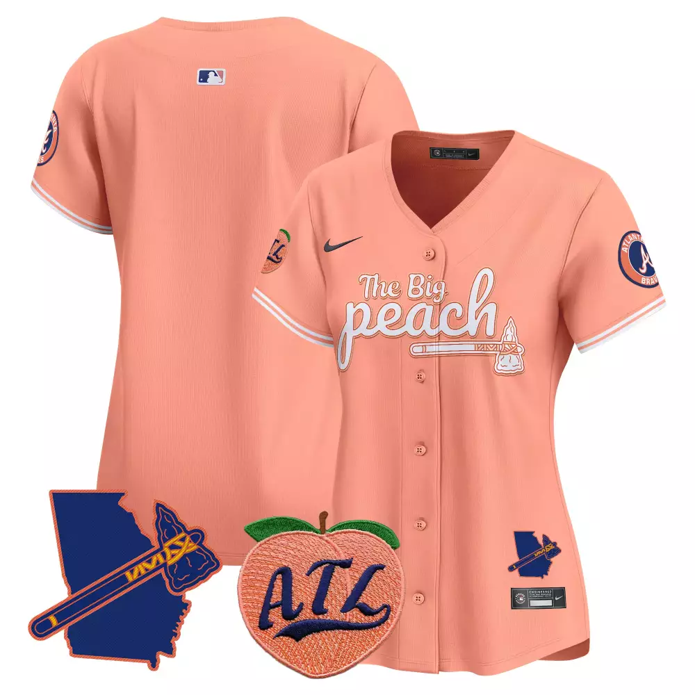 atlanta braves women s 2023 all stitched vapor jersey peach the big peach edition