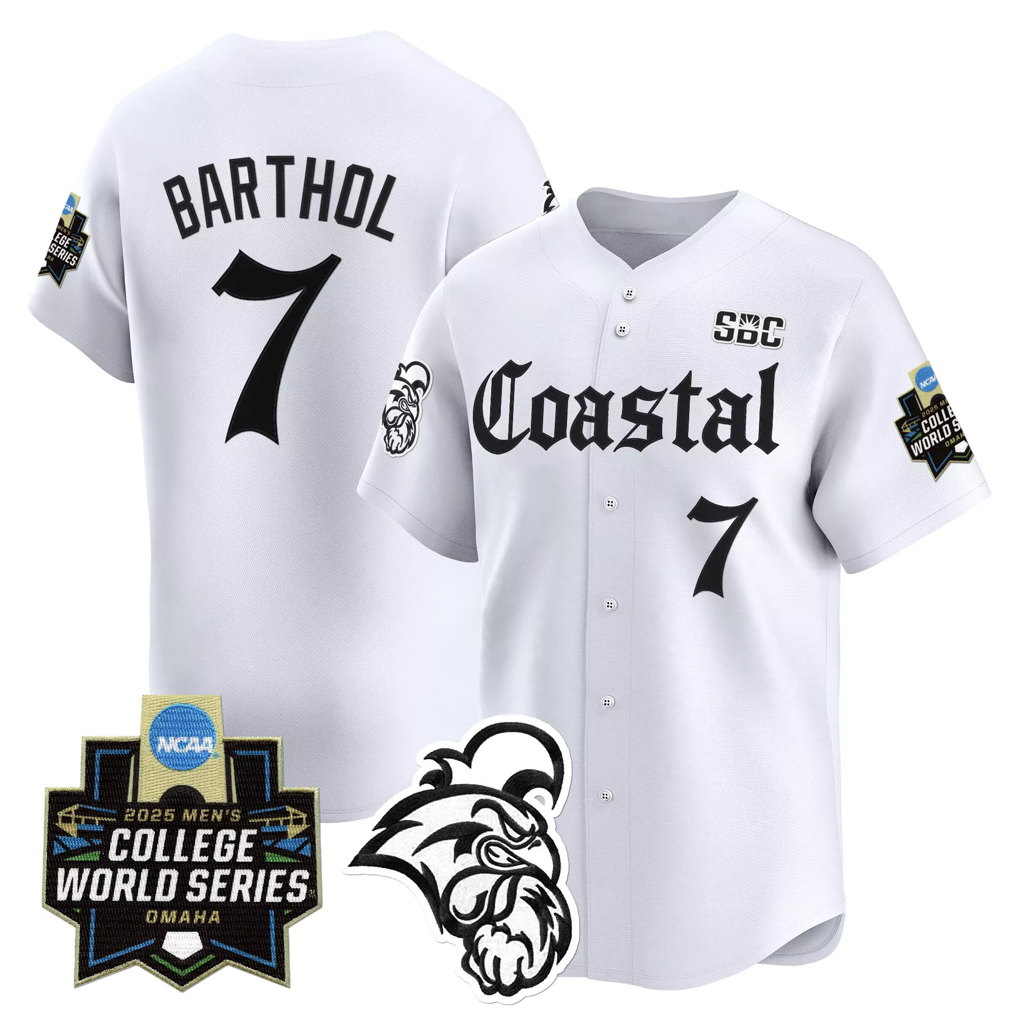 Barthol 7 Men S Vapor Jersey Coastal Carolina Chanticleers 2025 College World Series White;Barthol 7 Men S Vapor Jersey Coastal Carolina Chanticleers Black 2025 College World Series Stitched;Barthol 7 Men S Vapor Jersey White Coastal Carolina Chanticleers 2025 College World Series;Barthol 7 Women S Coastal Carolina Chanticleers Stitched Vapor Jersey 2025 College World Series;Barthol 7 Women S Stitched Vapor Jersey Coastal Carolina Chanticleers 2025 College World Series Aqua