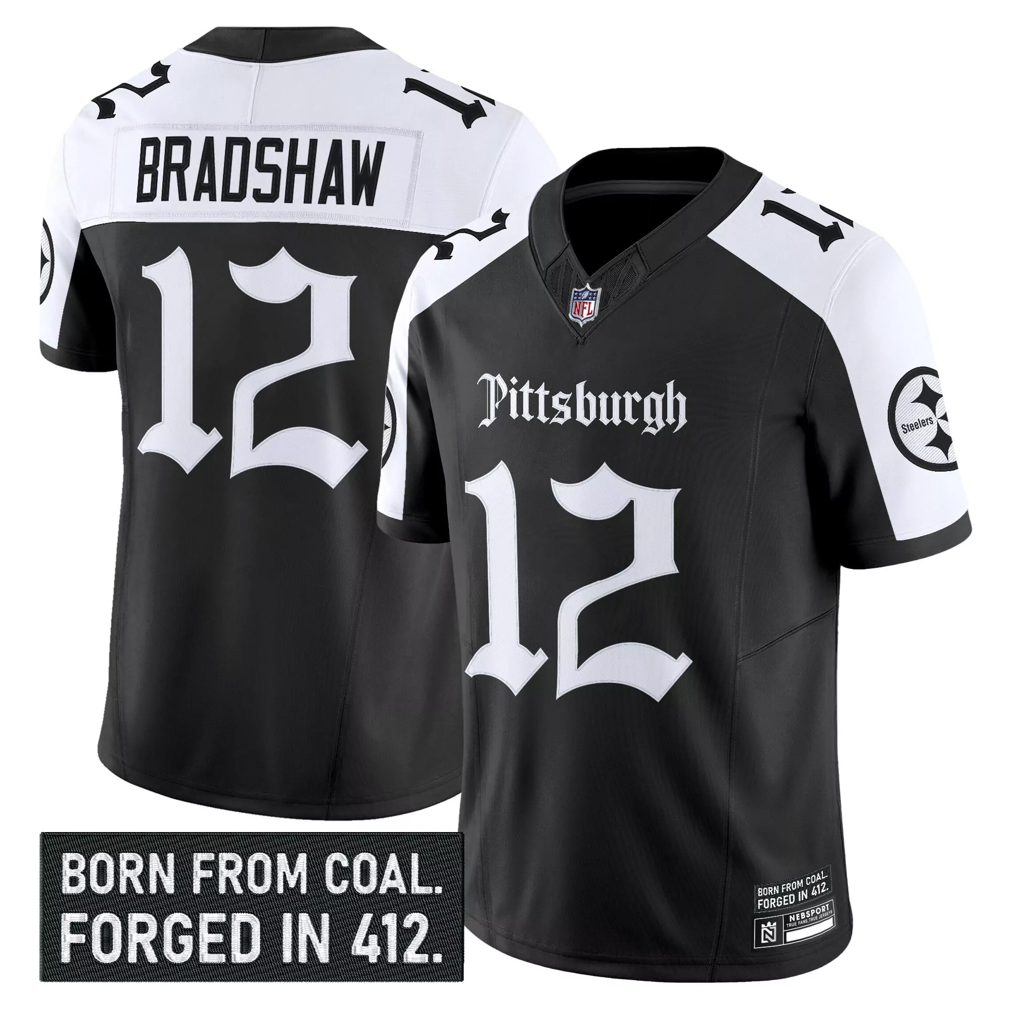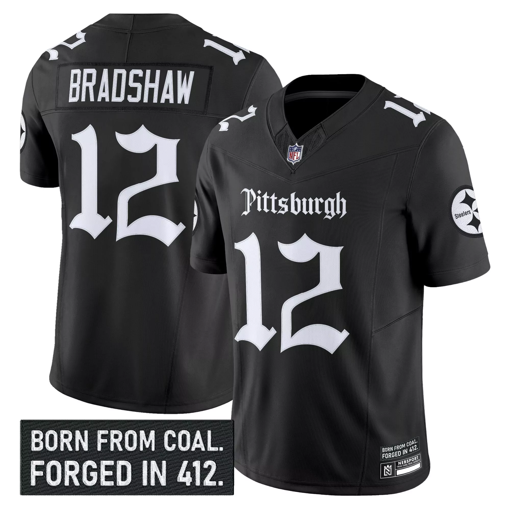 bradshaw 12 men s stitched vapor jersey pittsburgh steelers black 50th anniversary 2015;bradshaw 12 men s vapor jersey pittsburgh steelers black stitched 2023 born from coal edition;bradshaw 12 men s vapor jersey pittsburgh steelers black stitched embroidered 2023 edition;bradshaw 12 men s pittsburgh steelers black vapor limited jersey with embroidered patch 1933;bradshaw 12 men s stitched vapor jersey pittsburgh steelers white 1933 patch limited edition