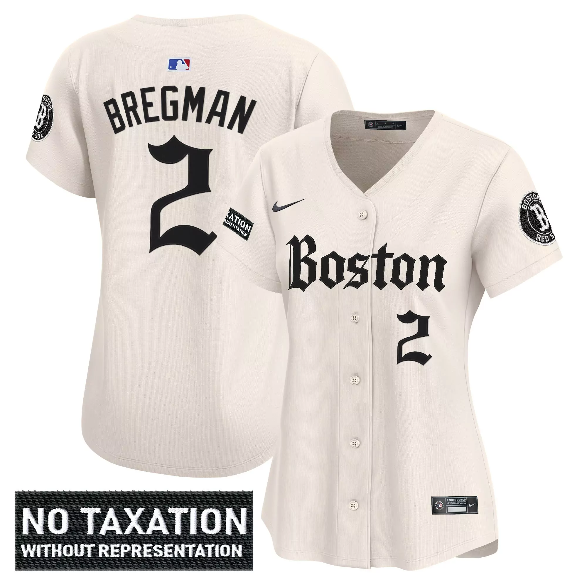 bregman 2 women s boston red sox 2023 vapor jersey gray embroidered no taxation patch;bregman 2 women s boston red sox vapor jersey cream no taxation patch 2023;bregman 2 women s boston red sox vapor jersey cream with no taxation patch 2023 edition;bregman 2 women s boston red sox white stitched vapor jersey with freedom trail patch 2023;bregman 2 women s red boston red sox 2023 freedom trail patch stitched vapor jersey