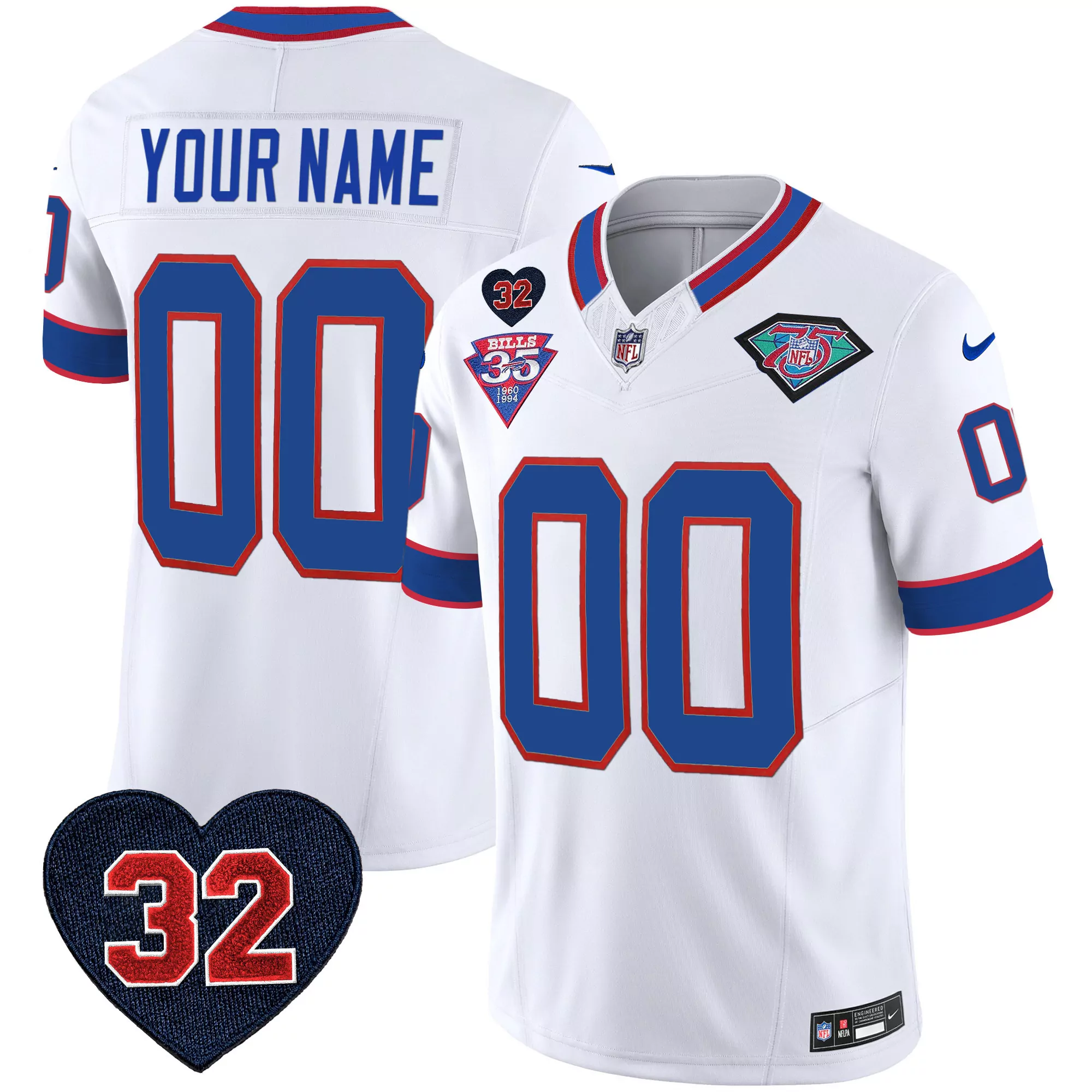 buffalo bills white custom jersey with 35th anniversary patch all stitched vapor edition;buffalo bills white custom jersey with maffia patch nfl fan apparel;buffalo bills white custom jersey with your name and number 00 nfl gear;buffalo bills white jersey with laurel design custom name number 00;buffalo bills white stitched jersey 2023 afc east champions name patch men s style