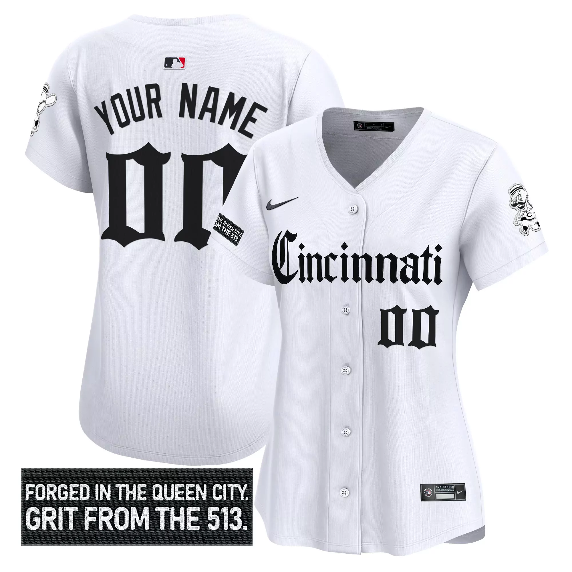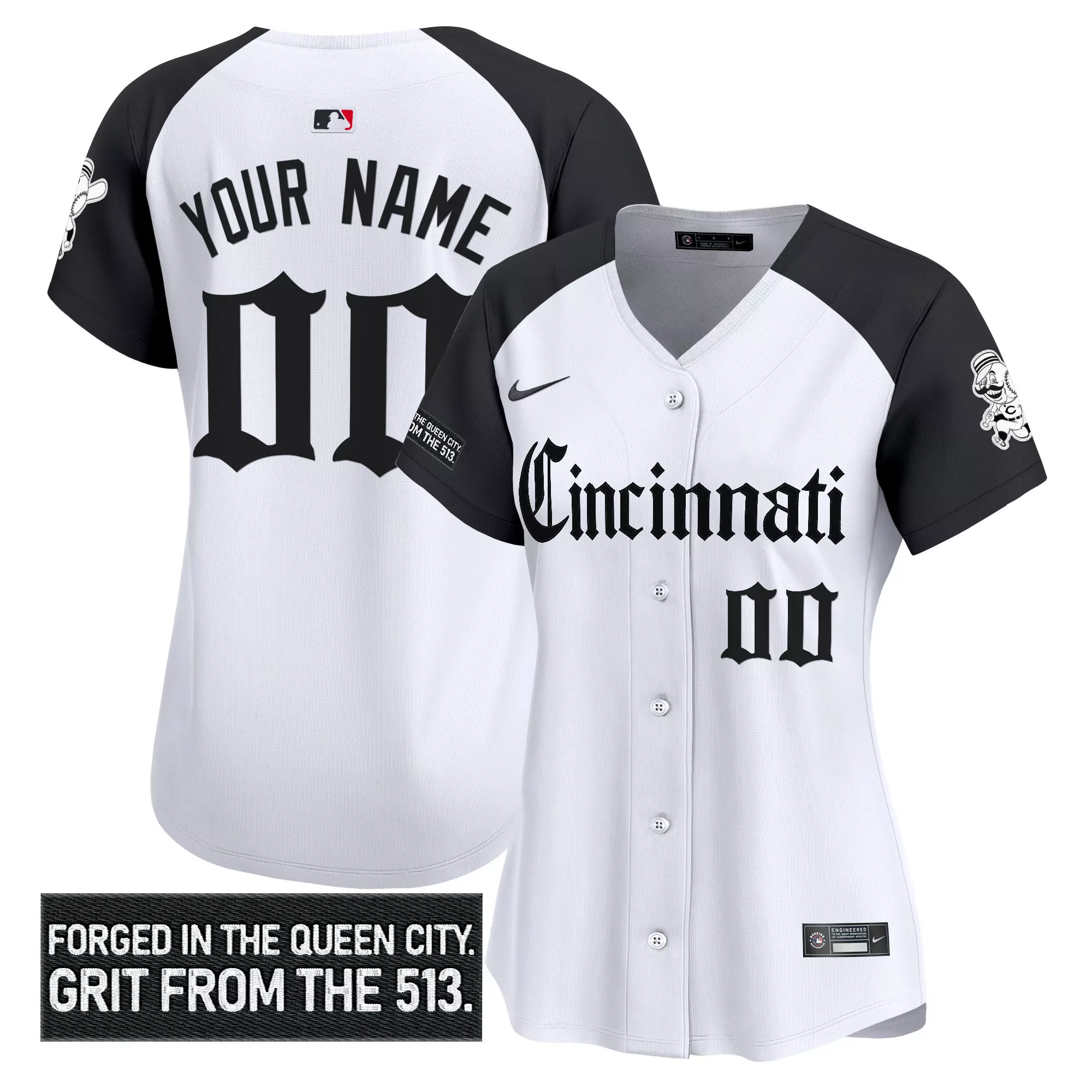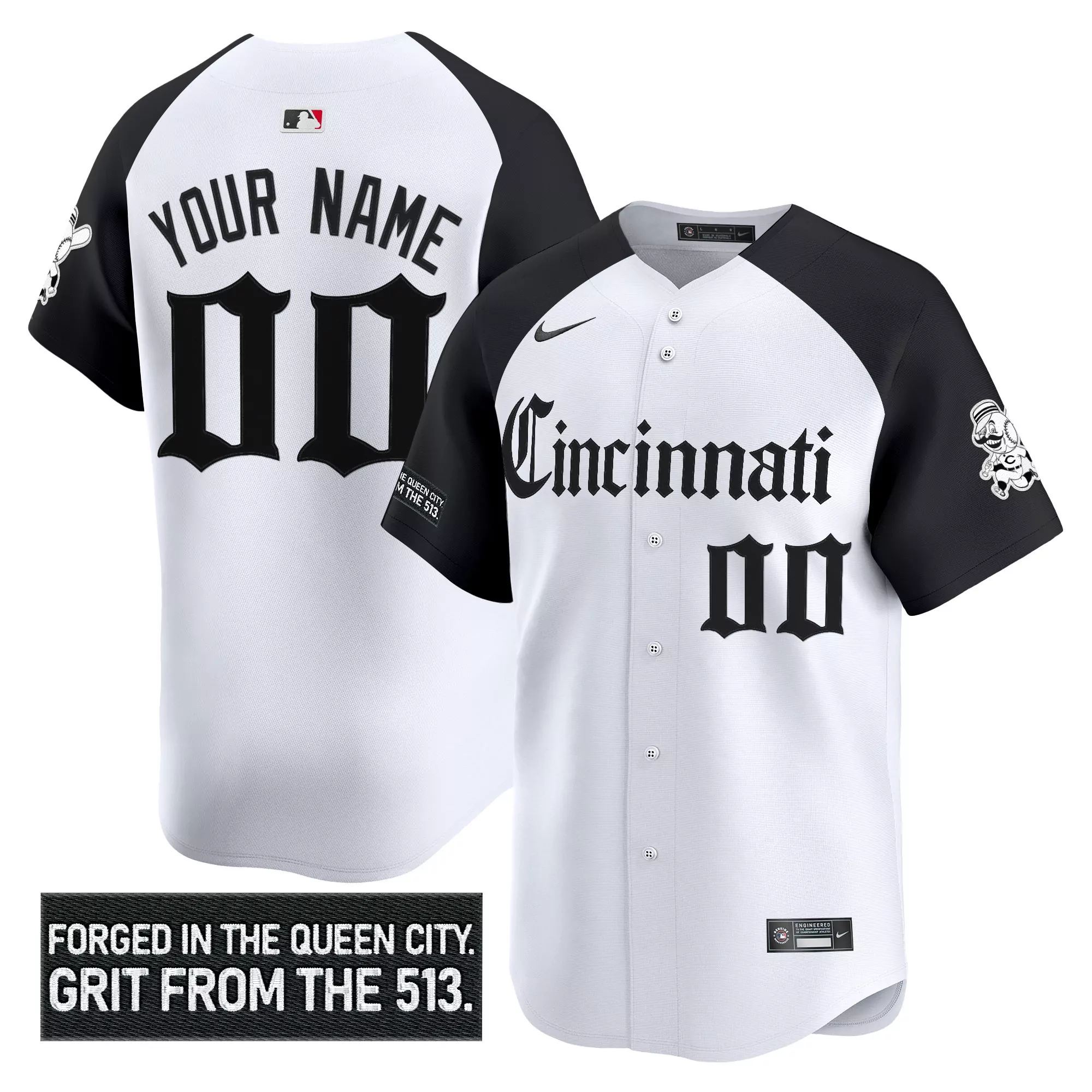 Cincinnati Reds Custom Jersey White Black Mlb Personalized Shirt;Cincinnati Reds Custom Jersey White With Black Sleeves Grit From The 513 Theme;Cincinnati Reds Custom Jersey White With Stars Stripes Player Name 00 Patch 14;Cincinnati Reds Custom White Jersey Personalized Name Number Edition;Cincinnati Reds Custom White Jersey With 14 Patch And Your Name Mlb Merchandise