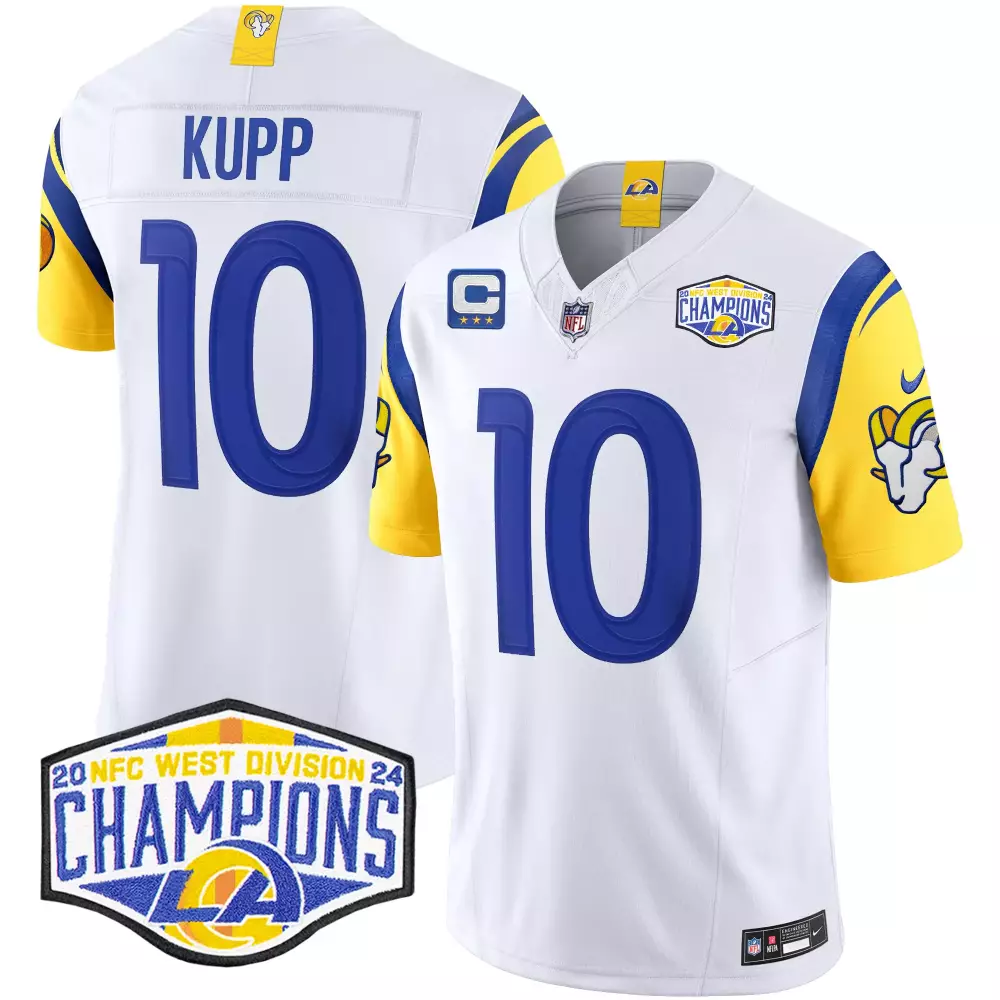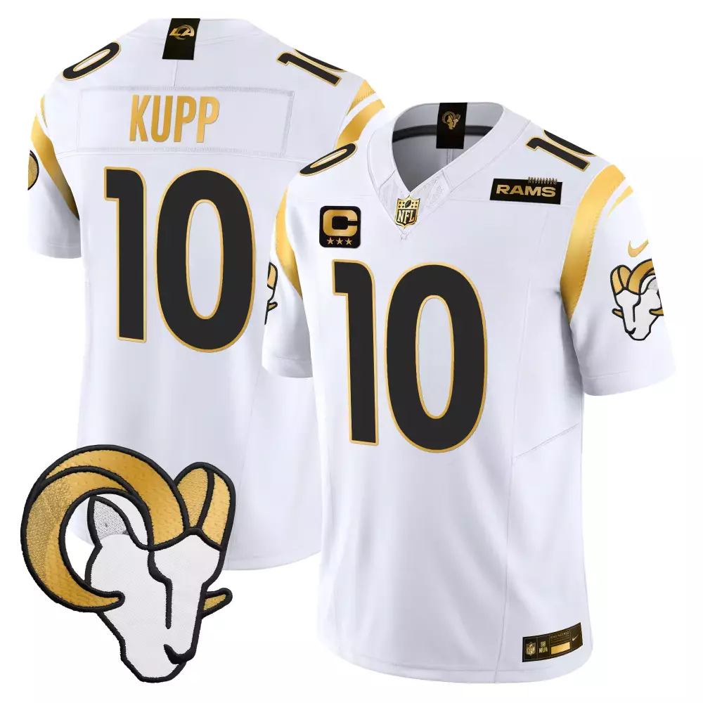 cooper kupp white mens los angeles rams 2024 gold vapor limited jersey all stitched;cooper kupp white mens los angeles rams 2024 nfc west division champions vapor limited jersey all stitched;cooper kupp white mens los angeles rams california patch vapor limited jersey all stitched;cooper kupp white mens los angeles rams mexico vapor limited jersey all stitched;cooper kupp white mens los angeles rams special game jersey all stitched