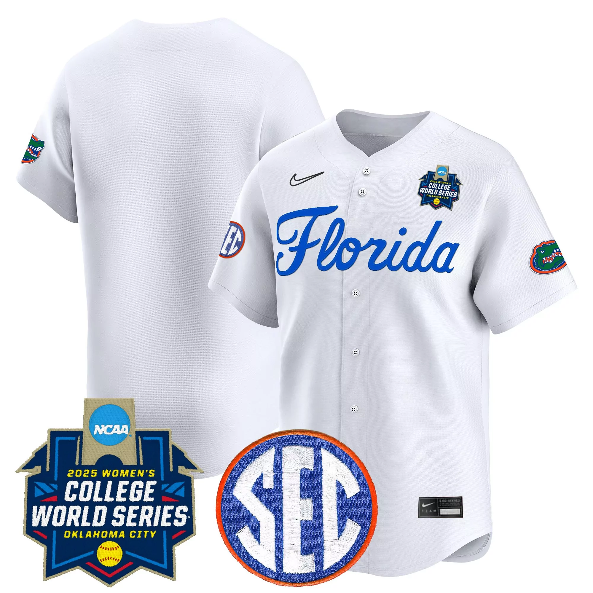 Florida Gators Women S Custom White Jersey With Sec And College World Series Patches;Florida Gators Women S Orange Custom Jersey With Ncaa College World Series And Sec Patches;Florida Gators Women S Stitched Vapor Jersey White 2025 College World Series Patch;Haeger 17 Men S Vapor Jersey White Florida Gators 2025 Women S College World Series Stitched;Haeger 17 Women S Stitched Vapor Jersey Florida Gators Blue Sec 2025 Women S College World Series