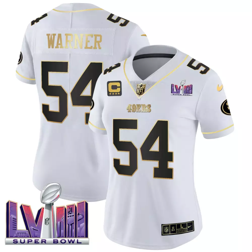 fred warner white gold womens san francisco 49ers super bowl lviii patch vapor jersey v2 all stitched