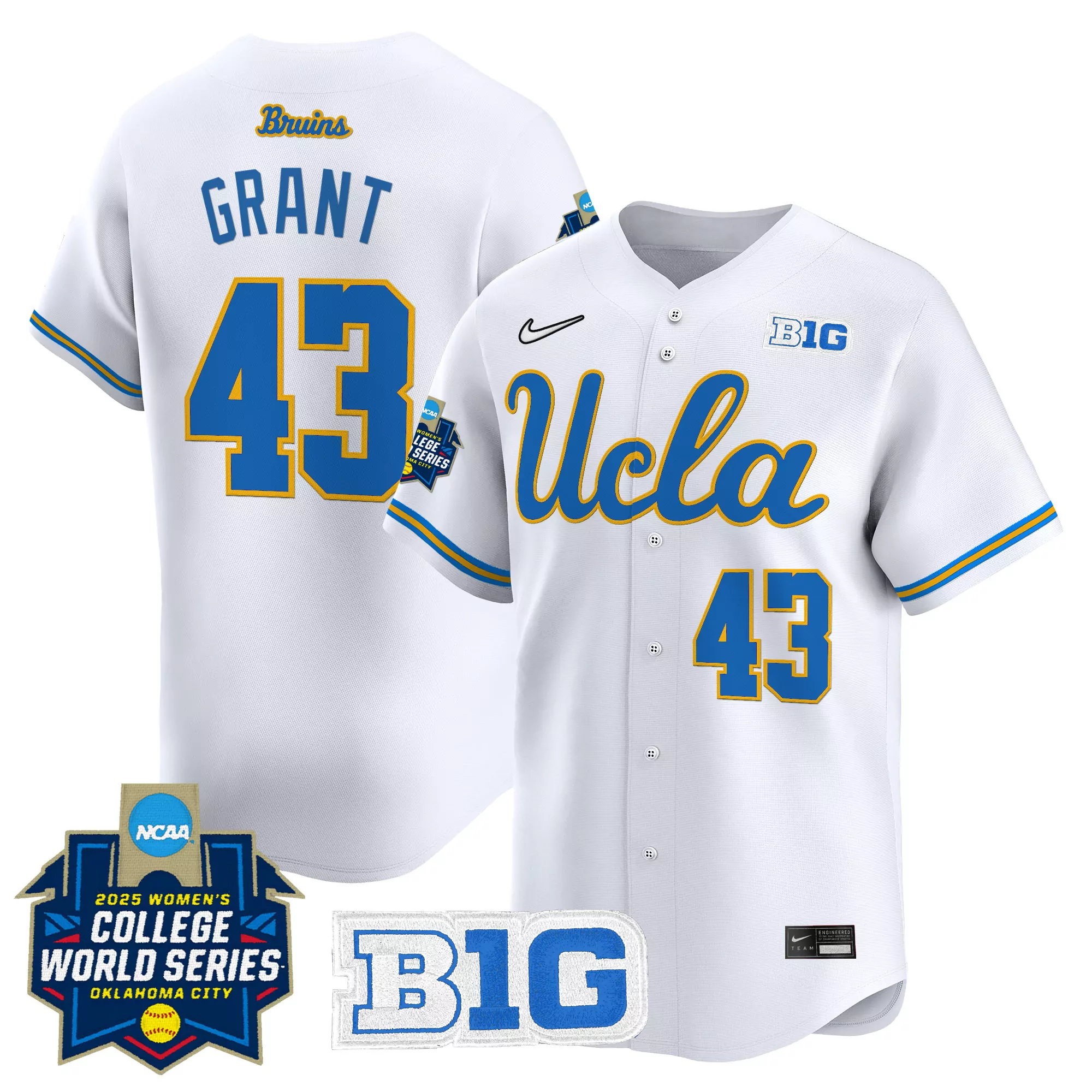 Grant 43 Ucla Bruins Women S Stitched Vapor Jersey 2025 Wcws White With B1G Patch