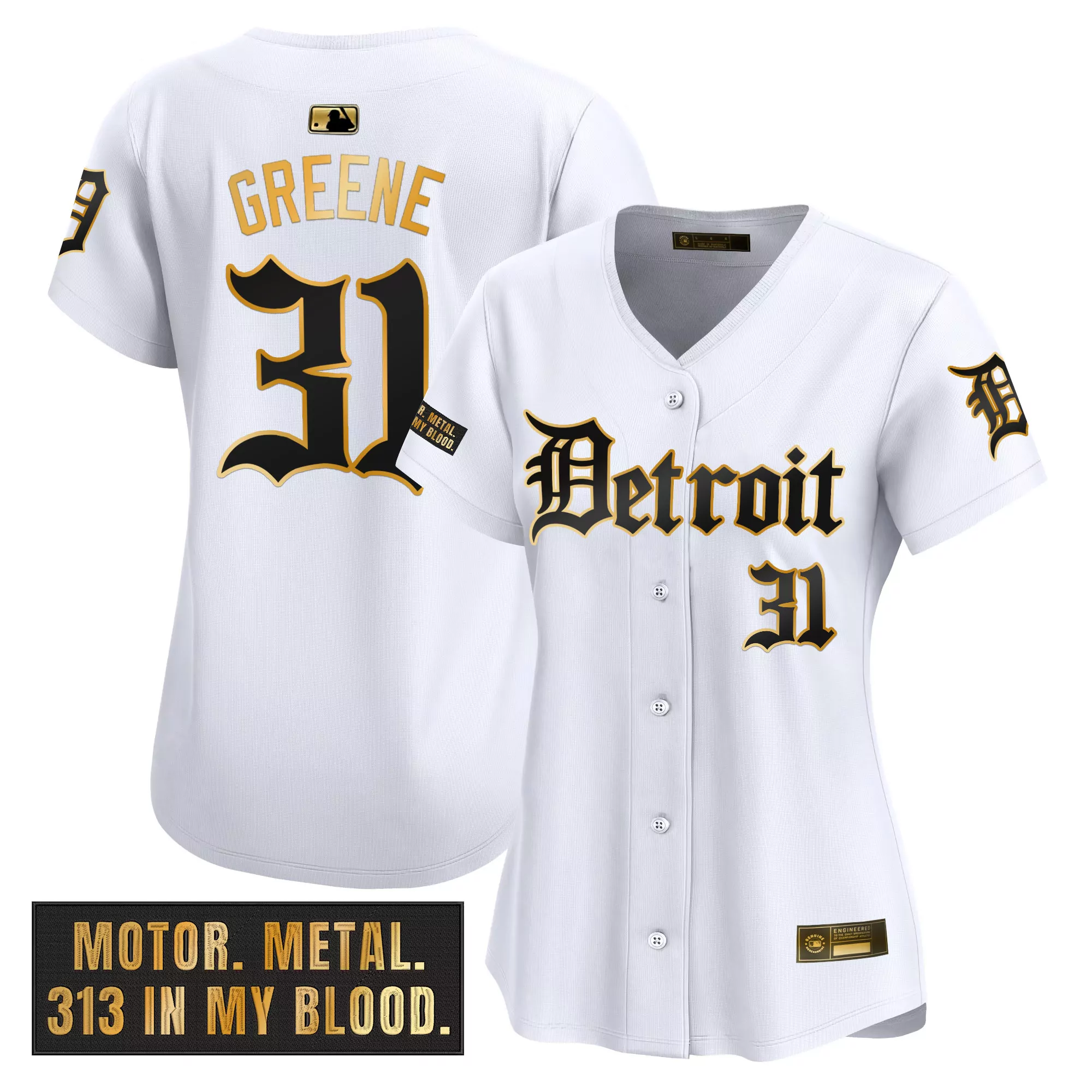 greene 31 women s detroit tigers gold vapor stitched jersey 2023 motor edition;greene 31 women s detroit tigers vapor premier jersey motor edition 2023 stitched white black;greene 31 women s stitched vapor jersey detroit tigers orange with embroidered patch 2023;greene 31 women s stitched vapor jersey detroit tigers white motor patch 2023;greene 31 women s stitched vapor jersey detroit tigers white with embroidered paws patch 2023