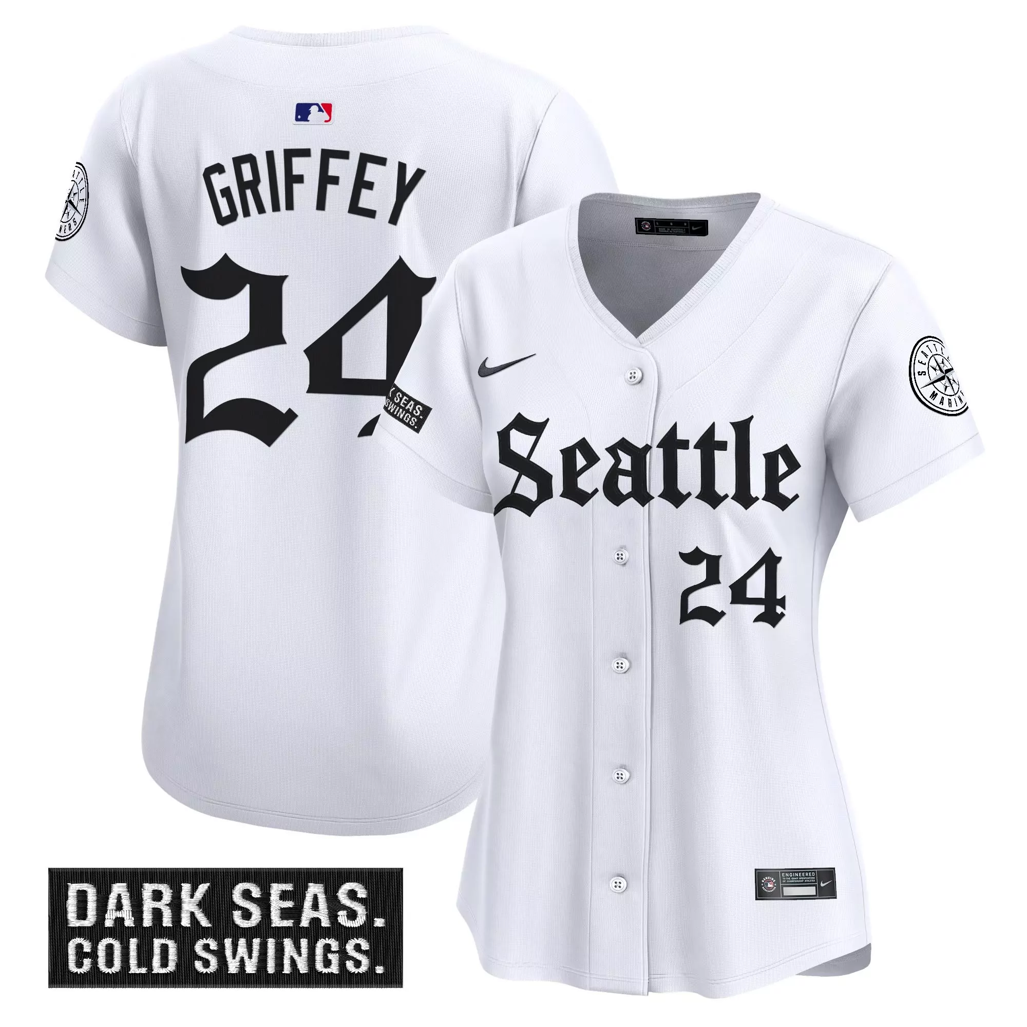 griffey 24 seattle mariners white hispanic heritage all stitched vapor jersey;griffey 24 seattle mariners white hispanic heritage all stitched vapor jersey 1;griffey 24 women s seattle mariners 2023 vapor jersey dark seas edition stitched;griffey 24 women s seattle mariners vapor jersey black stitched dark seas patch 2023;griffey 24 women s seattle mariners vapor jersey dark seas edition 2023