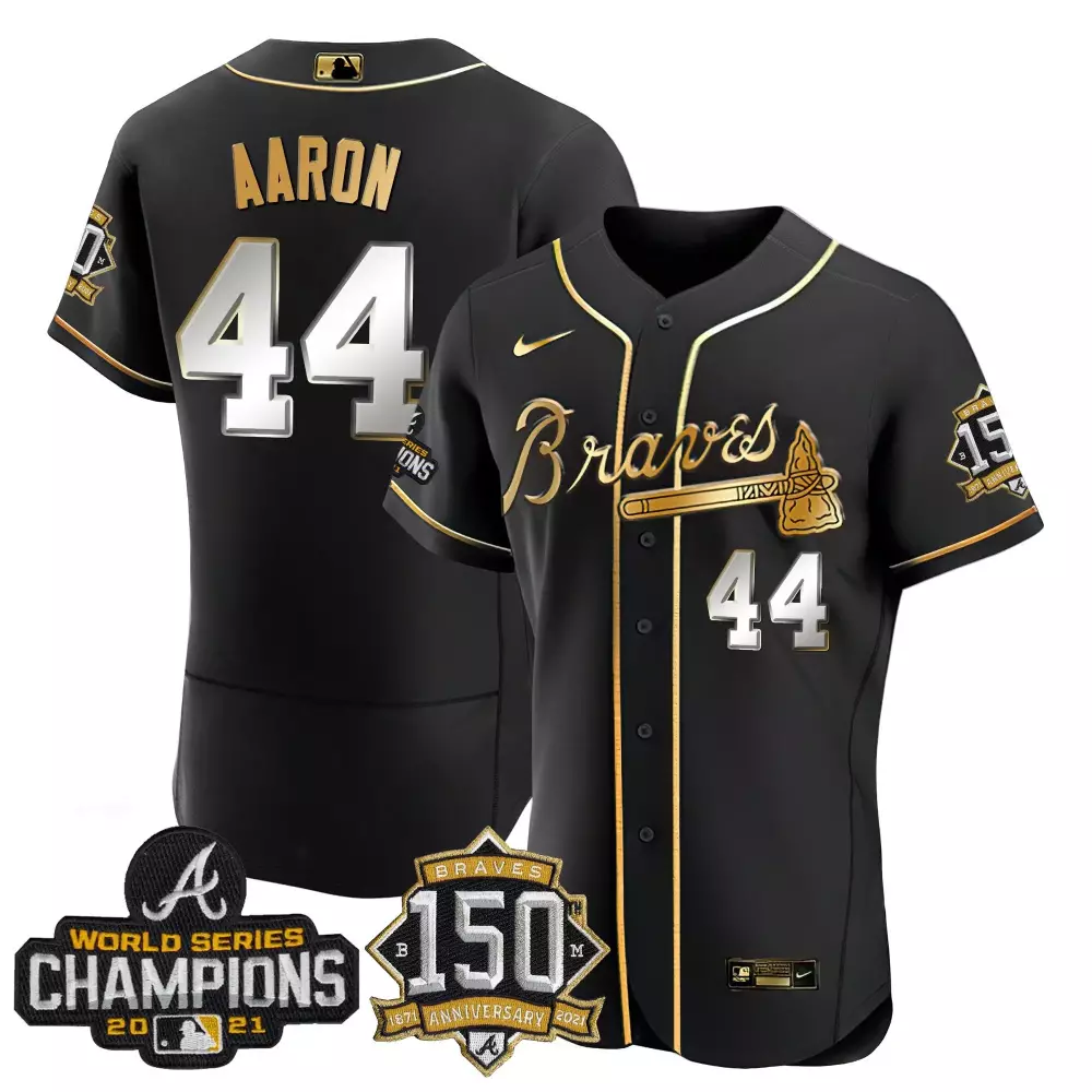 hank aaron 44 atlanta braves black stitched jersey men s 50th anniversary name patch 1974;hank aaron 44 atlanta braves black stitched jersey men s name patch 2021 world series champions;hank aaron 44 atlanta braves black stitched jersey name patch 715th home run 2023 men s;hank aaron 44 atlanta braves cream all stitched jersey with name patch 2023 men s style;hank aaron 44 atlanta braves green armed forces day stitched jersey men s style name patch 2023