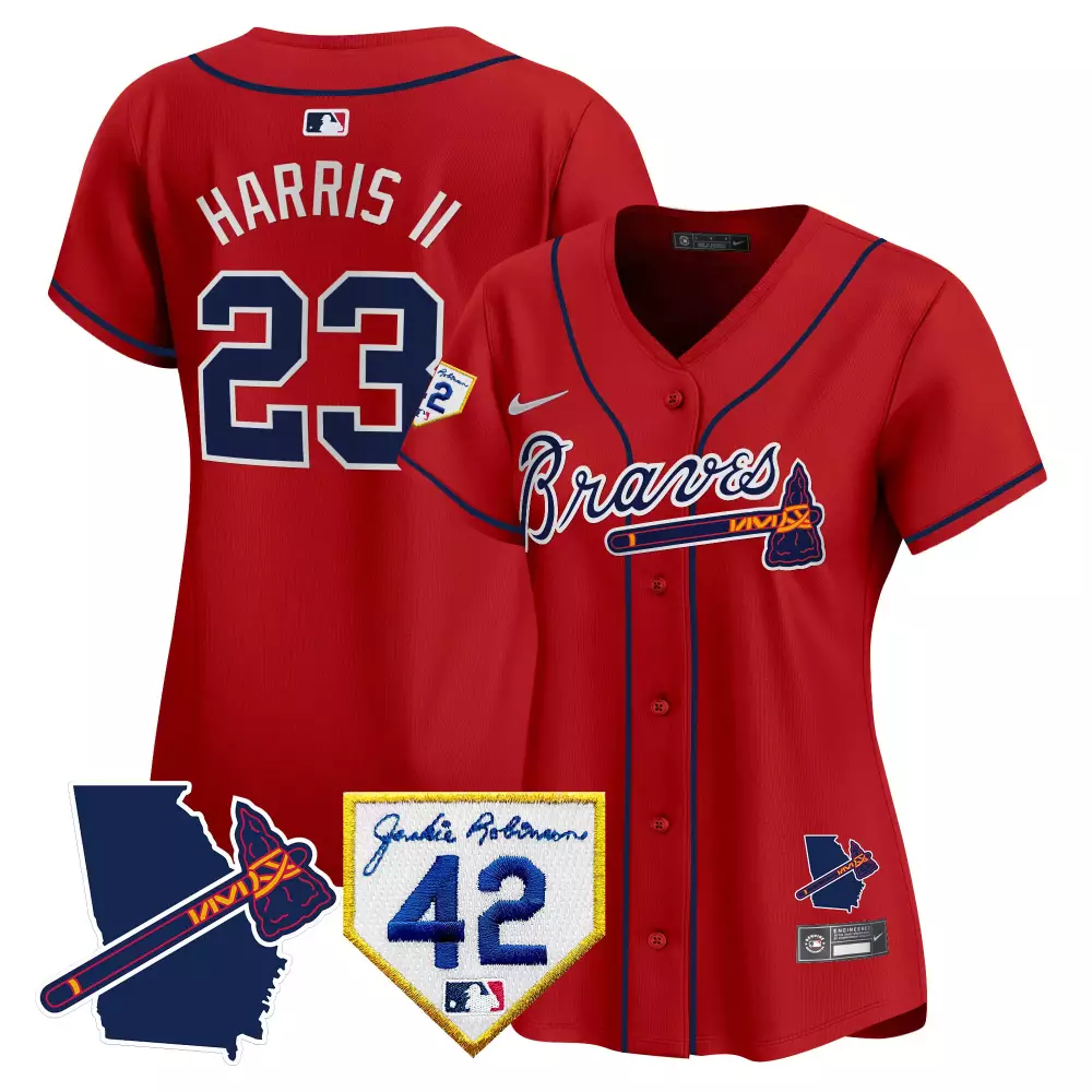harris ii 23 atlanta braves 2023 women s all stitched vapor jersey red 715th home run edition;harris ii 23 atlanta braves 2023 women s all stitched vapor jersey red jackie robinson 42 patch;harris ii 23 atlanta braves 2023 women s all stitched vapor jersey red n l patch;harris ii 23 atlanta braves 2023 women s all stitched vapor jersey red outkast edition;harris ii 23 atlanta braves 2023 women s all stitched vapor jersey red stars stripes