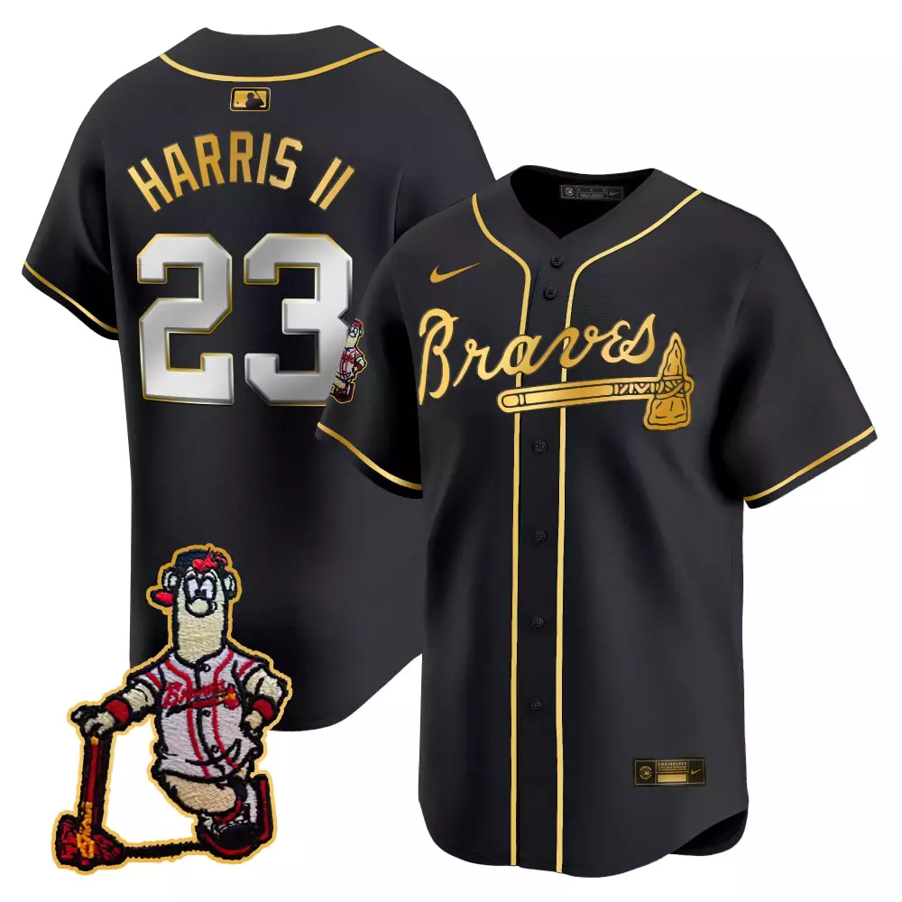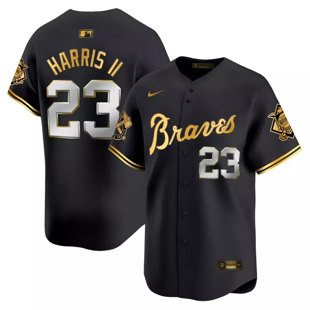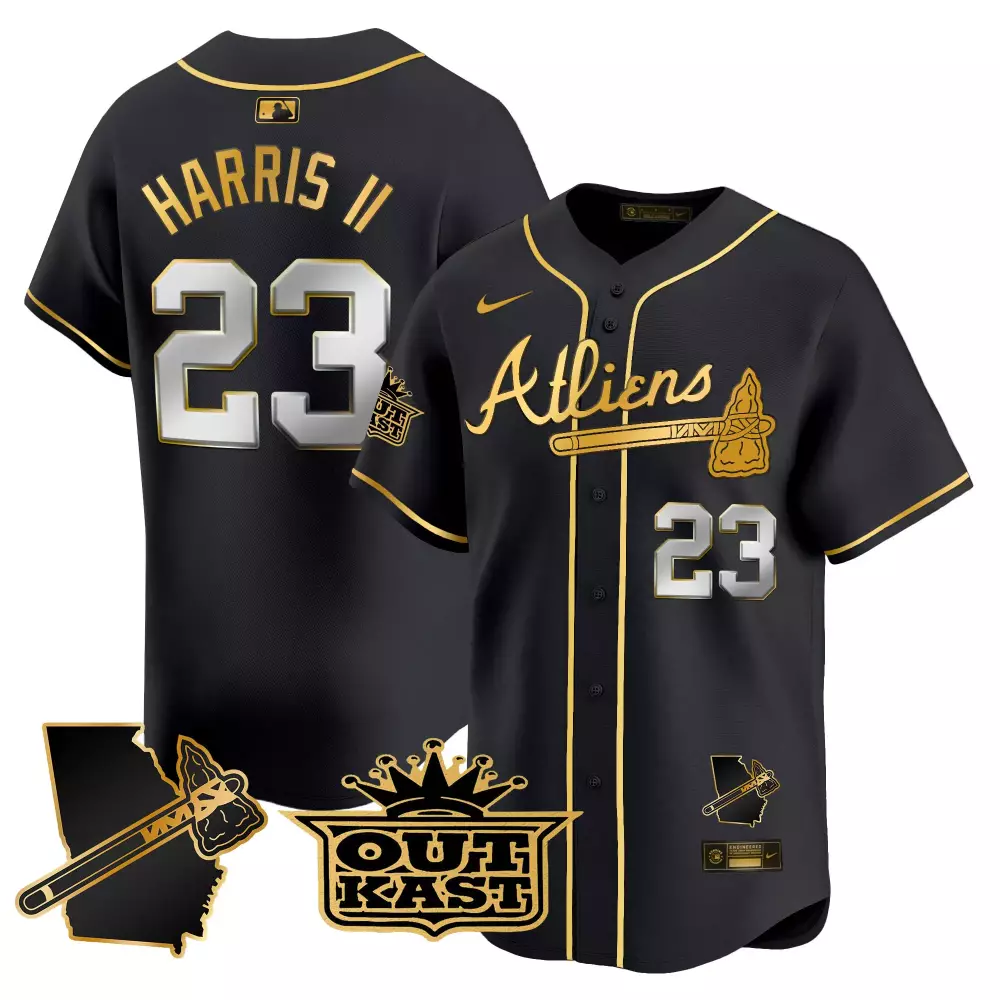 harris ii 23 atlanta braves black all stitched jersey male outkast 2023 name patch