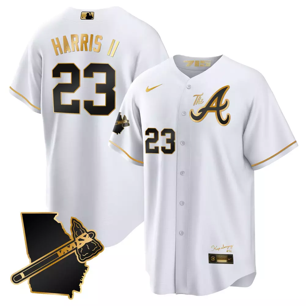 harris ii 23 atlanta braves white all stitched vapor jersey georgia patch 2023