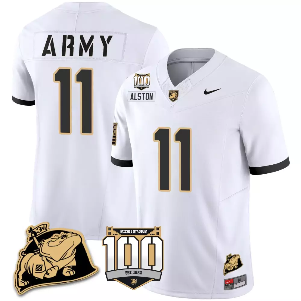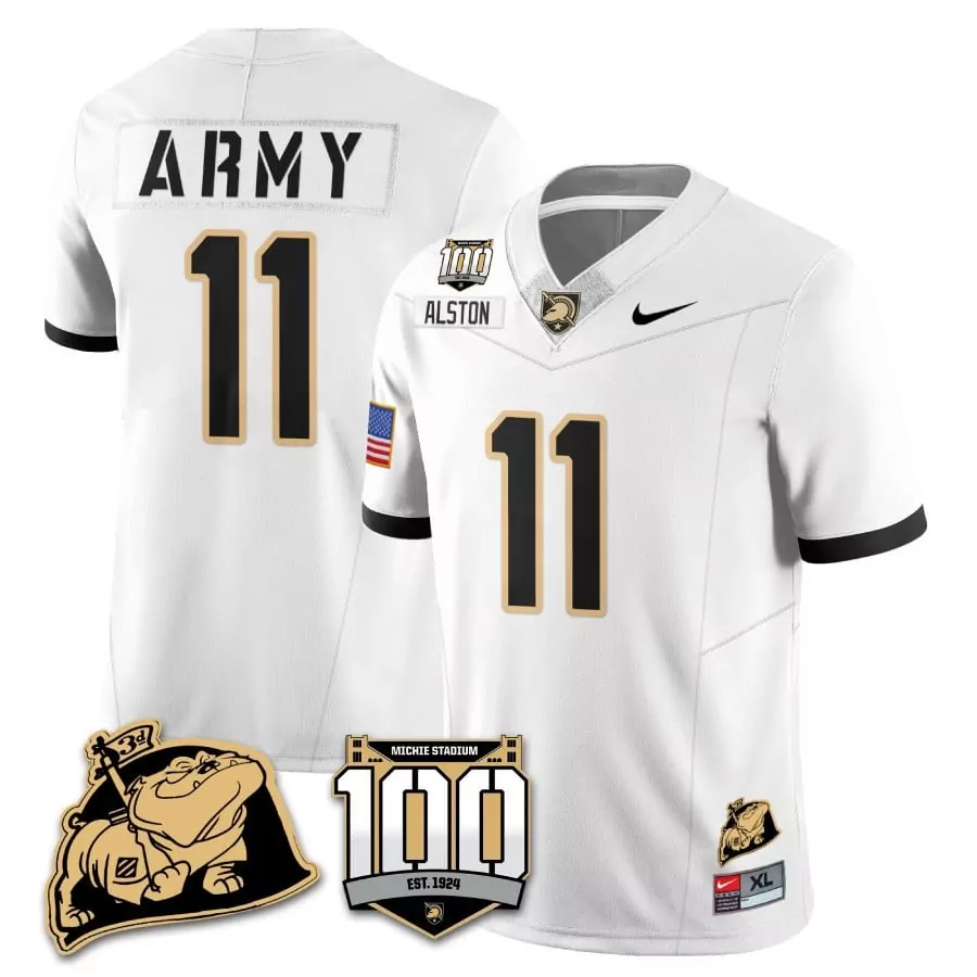 isaiah alston white alternate mens army black knights 100th anniversary patch vapor jersey all stitched;isaiah alston white alternate mens army black knights rocky the bulldog patch jersey all stitched;isaiah alston white alternate mens army black knights special uniform;isaiah alston white mens army black knights 100th anniversary patch vapor jersey all stitched;isaiah alston white mens army black knights 100th anniversary patch vapor jersey v2 all stitched