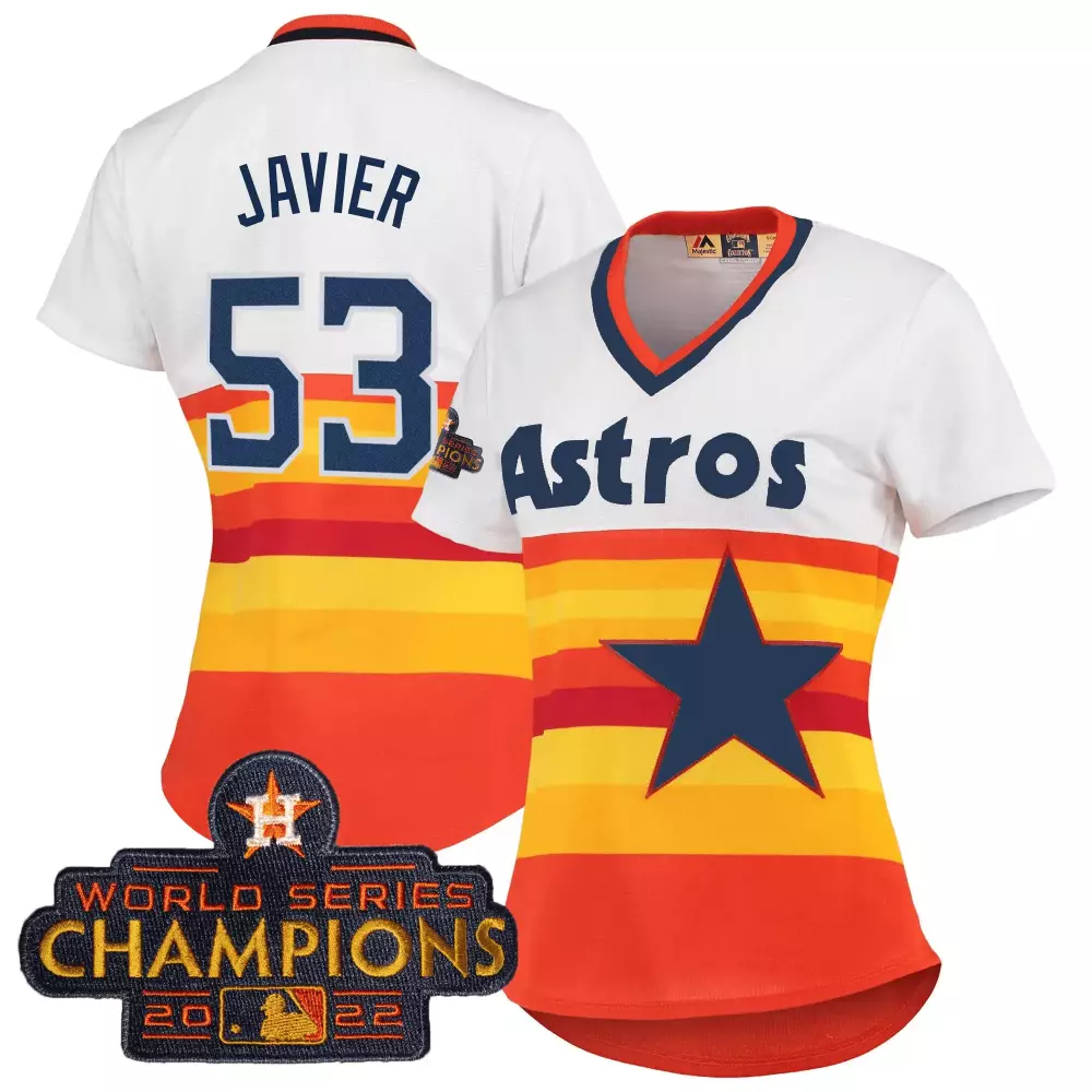 javier 53 houston astros women s black stitched jersey with name patch 2022 world series champions;javier 53 houston astros women s orange stitched jersey with champions patch 2022;javier 53 houston astros women s stitched jersey 2022 world series champions orange white;javier 53 houston astros women s white 2022 world series champions stitched jersey;javier 53 houston astros women s white stitched jersey 2022 world series champions name patch