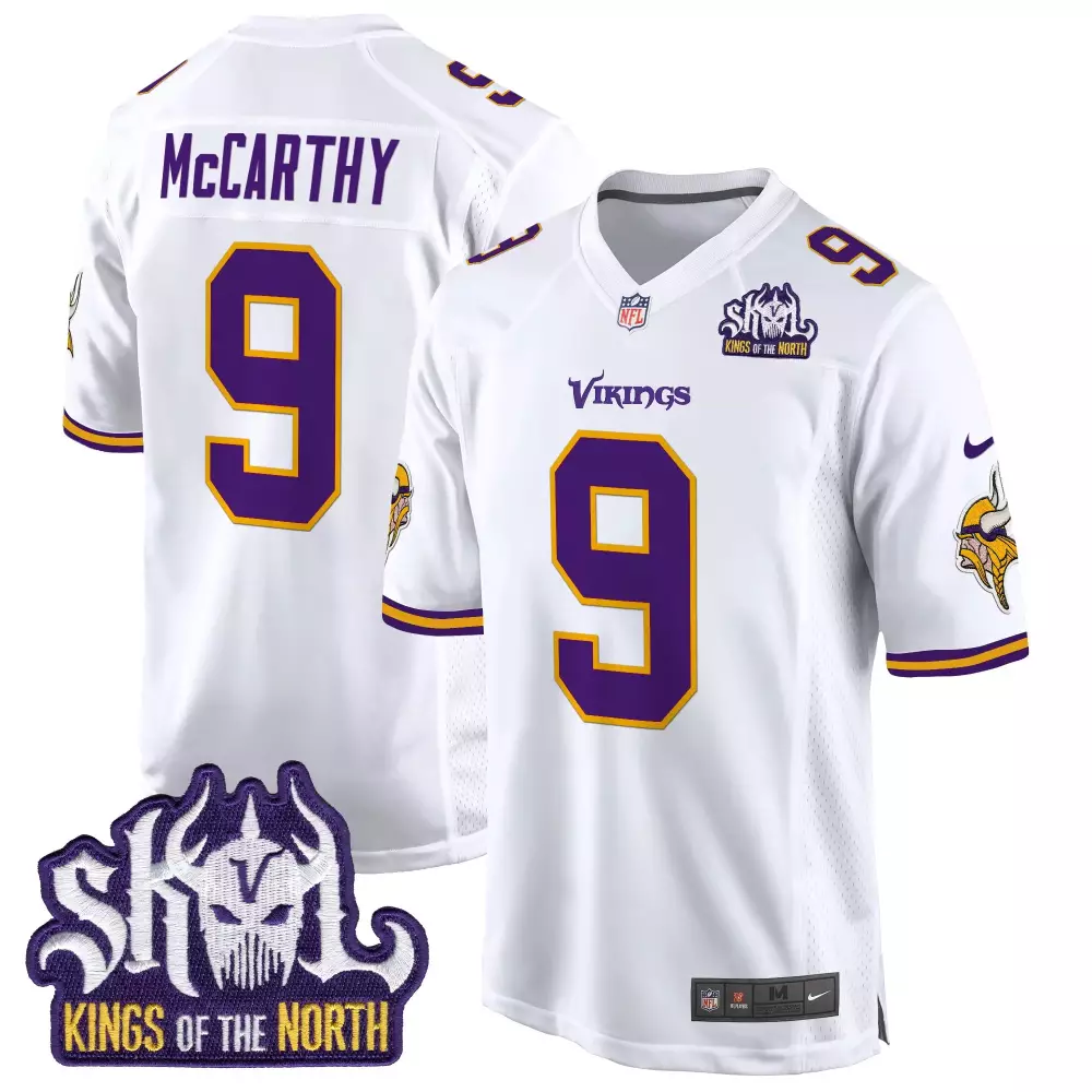 jj mccarthy white mens minnesota vikings bud grant patch classic baseball jersey all stitched;jj mccarthy white mens minnesota vikings bud grant patch classic limited jersey v3 all stitched;jj mccarthy white mens minnesota vikings bud grant patch classic limited jersey v6 all stitched;jj mccarthy white mens minnesota vikings king of the north patch game jersey all stitched;jj mccarthy white mens minnesota vikings king of the north patch throwback game jersey all stitched