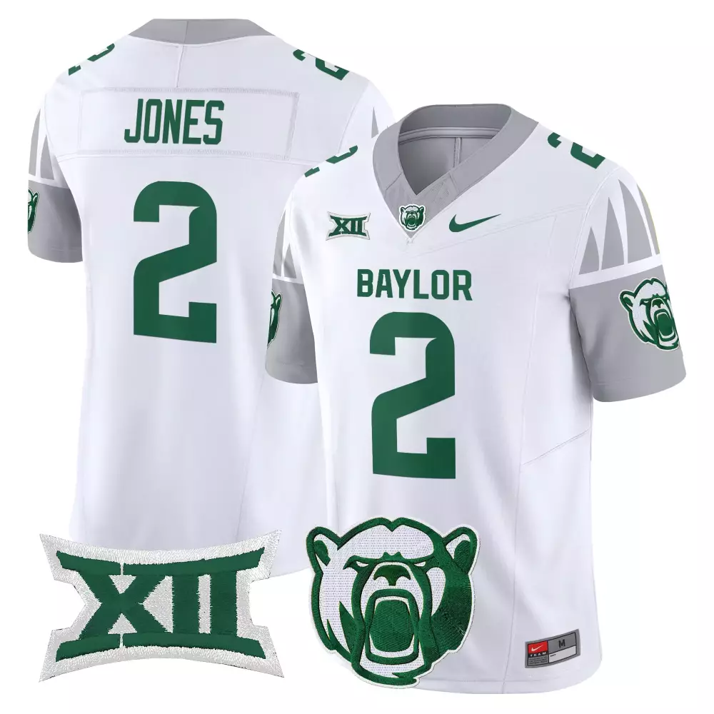 Jones 2 Men’S Baylor Bears Gray Stitched Jersey Name Patch 2025 Xii;Jones 2 Men’S Baylor Bears White All Stitched Jersey With Name Patch 2025;Jones 2 Men’S Baylor Bears Yellow All Stitched Jersey With Name Patch 2025;Jones 2 Men’S Baylor Bears Yellow Vapor Jersey All Stitched 2025 Xii Name Patch;Jones 2 Men’S Stitched Baylor Bears White Jersey With Xii Patch 2025 Limited Edition