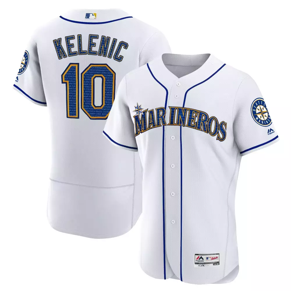 jose altuve 27 men s gray stitched jersey with name patch 2022 world series champions;jose altuve 27 men s navy space city champions alternate jersey all stitched 2022 name patch;judge 99 american league 2023 teal all stitched vapor jersey;kansas city monarchs red white jersey all stitched vapor jersey sulen edition;kelenic 10 seattle marineros white all stitched vapor jersey hispanic heritage edition