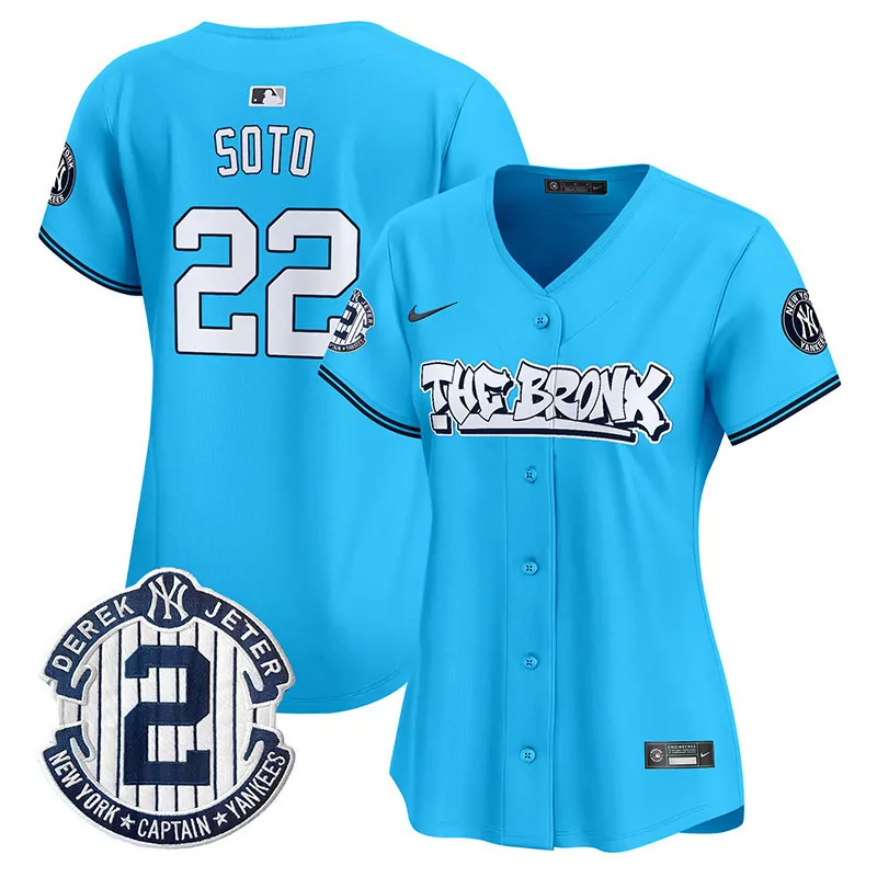 juan soto light blue womens new york yankees derek jeter patch vapor premier limited jersey v2 all stitched;juan soto light blue womens new york yankees nas illmatic vapor premier limited jersey all stitched;juan soto light blue womens new york yankees the bronx 2024 world series vapor premier limited jersey all stitched;juan soto light blue womens new york yankees the bronx graffiti bubblegum pink vapor premier limited jersey all stitched;juan soto light blue womens new york yankees the bronx graffiti vapor premier limited jersey all stitched