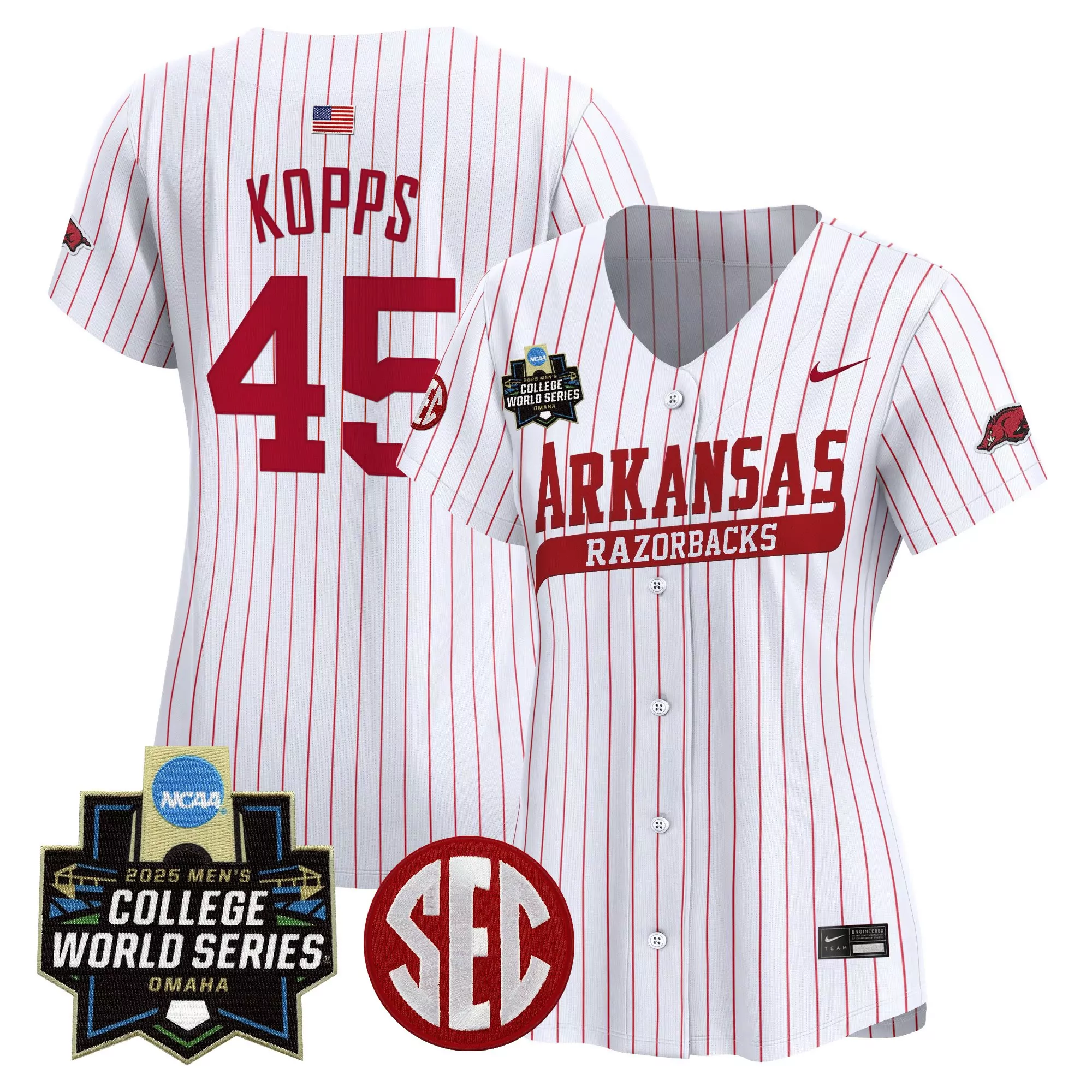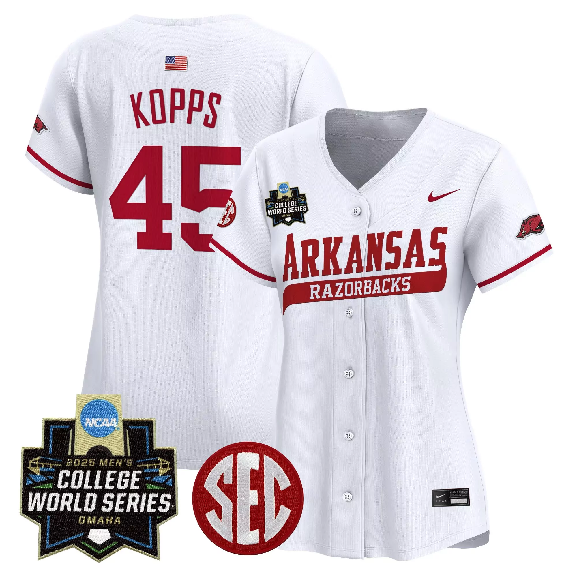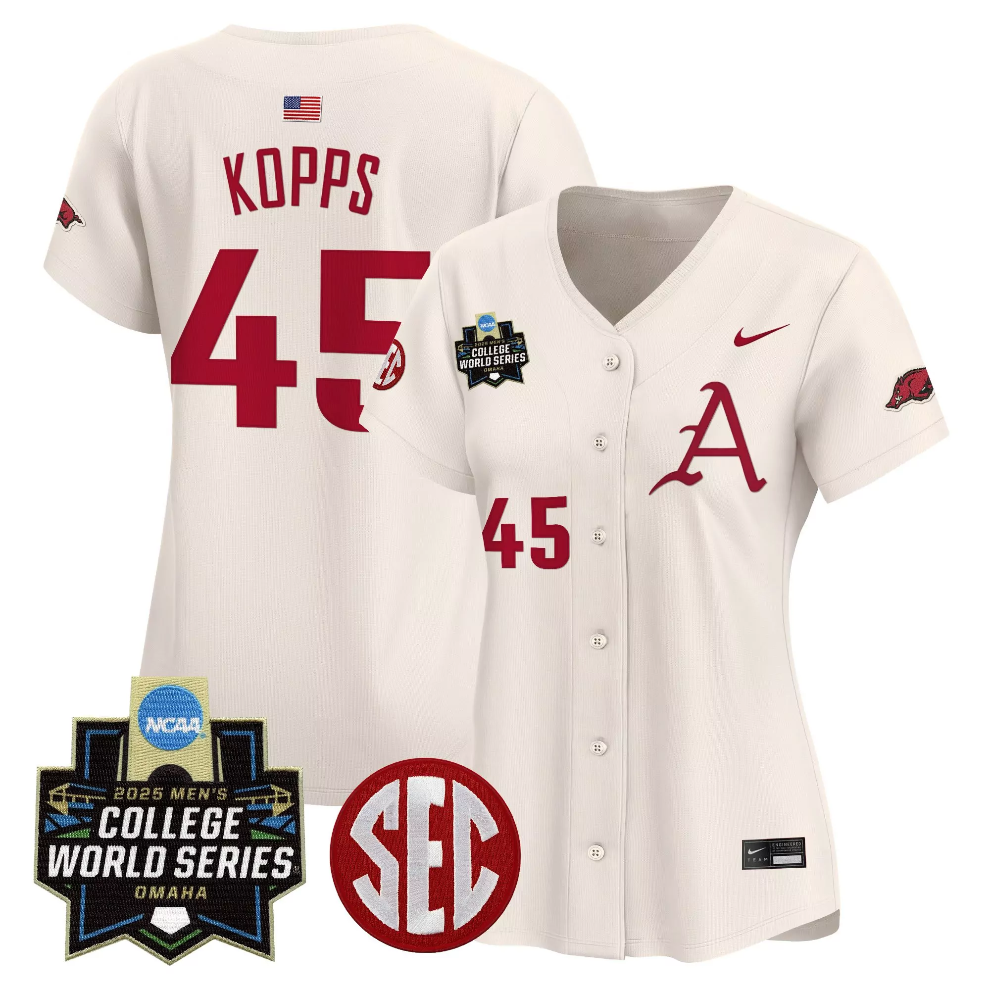 Kopps 45 Women S Arkansas Razorbacks 2025 College World Series Vapor Premier Jersey Gray;Kopps 45 Women S Arkansas Razorbacks 2025 Ncaa College World Series Vapor Jersey Red;Kopps 45 Women S Arkansas Razorbacks White Vapor Jersey 2025 College World Series Embroidered Patch;Kopps 45 Women S Arkansas Razorbacks White Vapor Jersey 2025 College World Series Embroidered Patch 1;Kopps 45 Women S Arkansas Razorbacks White Vapor Jersey 2025 Ncaa World Series Embroidered Patches