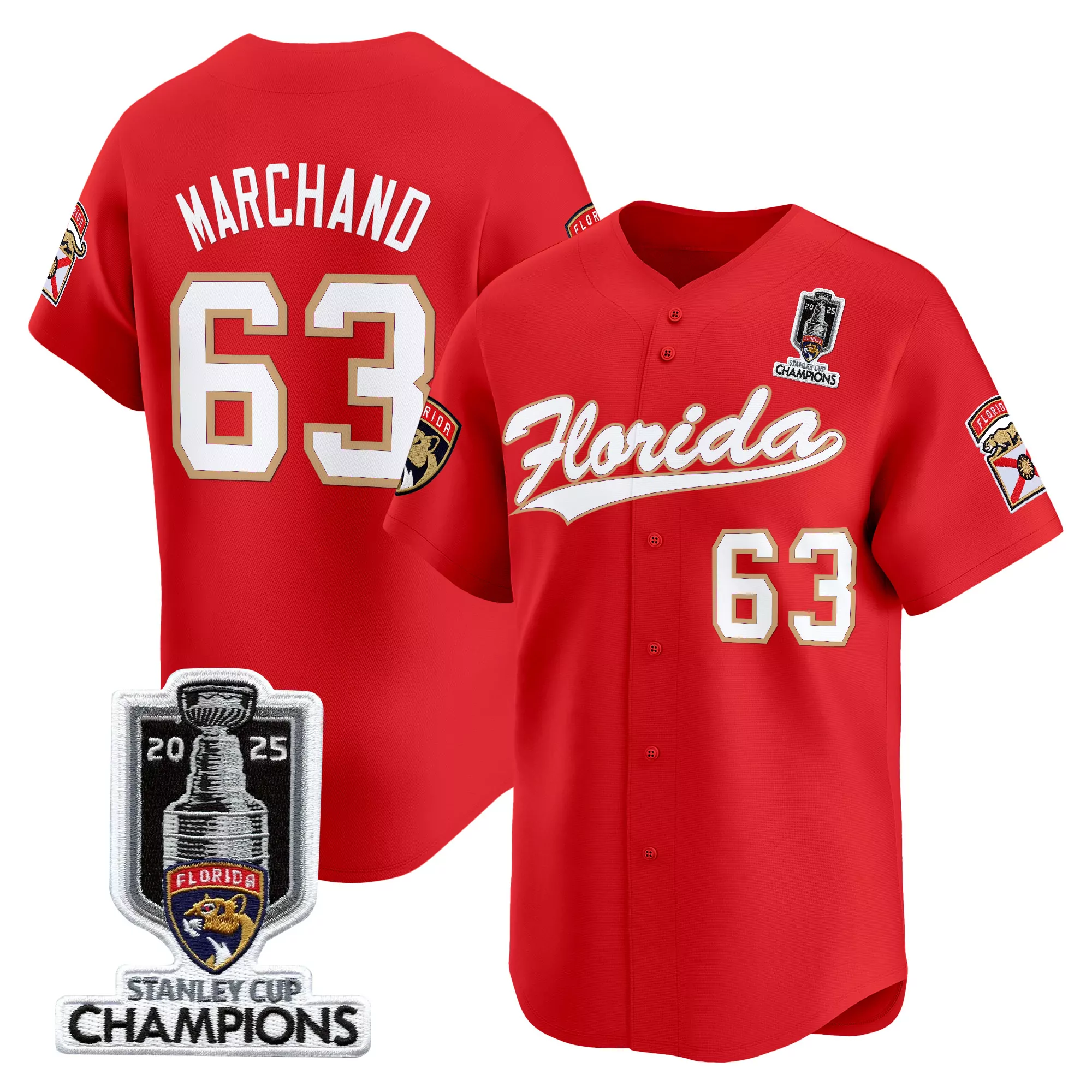 Marchand 63 Men S Red Florida Panthers 2025 Stanley Cup Champions Vapor Jersey Stitched