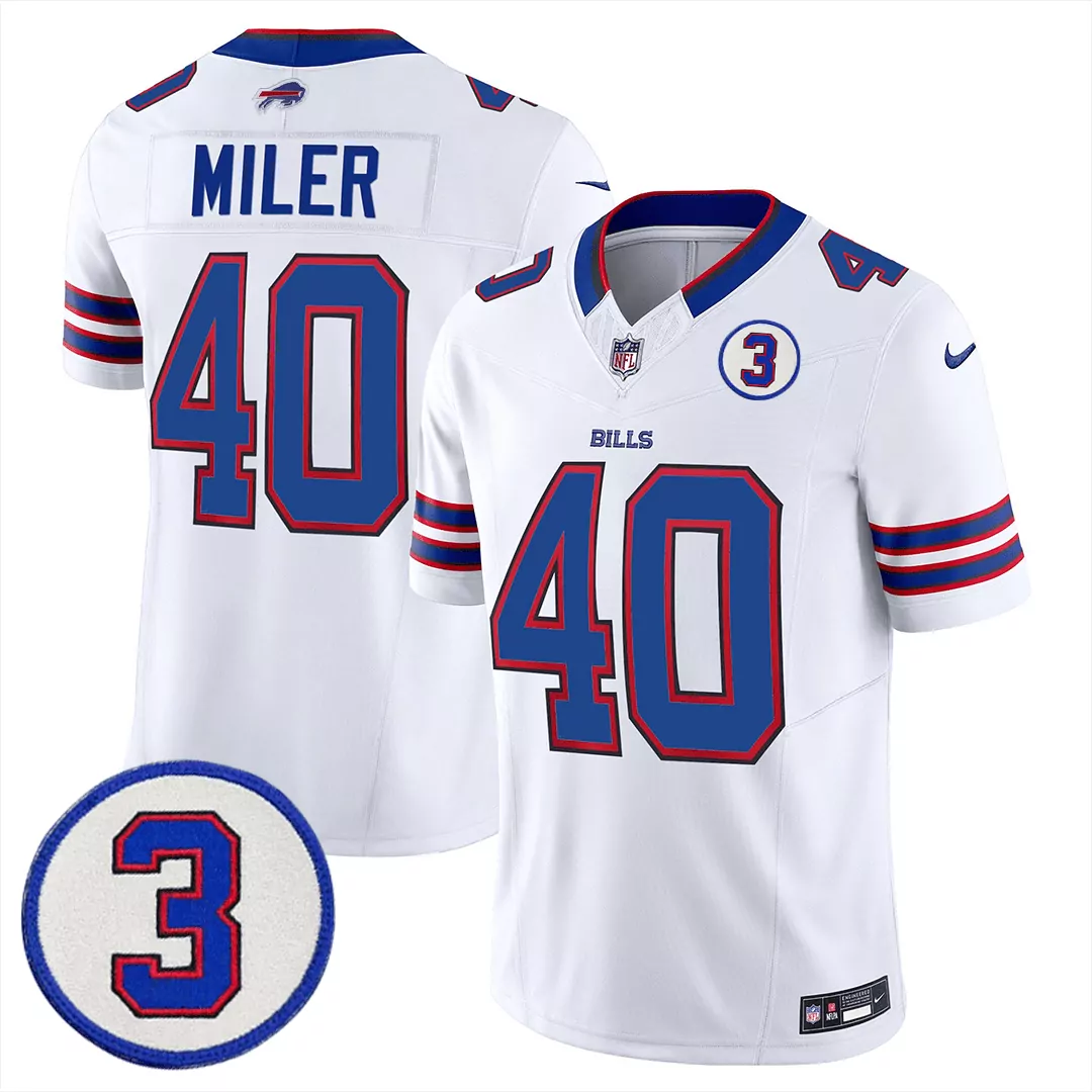 miler 40 buffalo bills 2023 women s all stitched vapor jersey champions edition blue;miler 40 buffalo bills blue all stitched vapor jersey;miler 40 buffalo bills men s royal blue all stitched jersey name patch 2022;miler 40 buffalo bills white all stitched vapor jersey with 3 patch limited edition;miller 40 buffalo bills 1994 white youth all stitched vapor jersey with patches