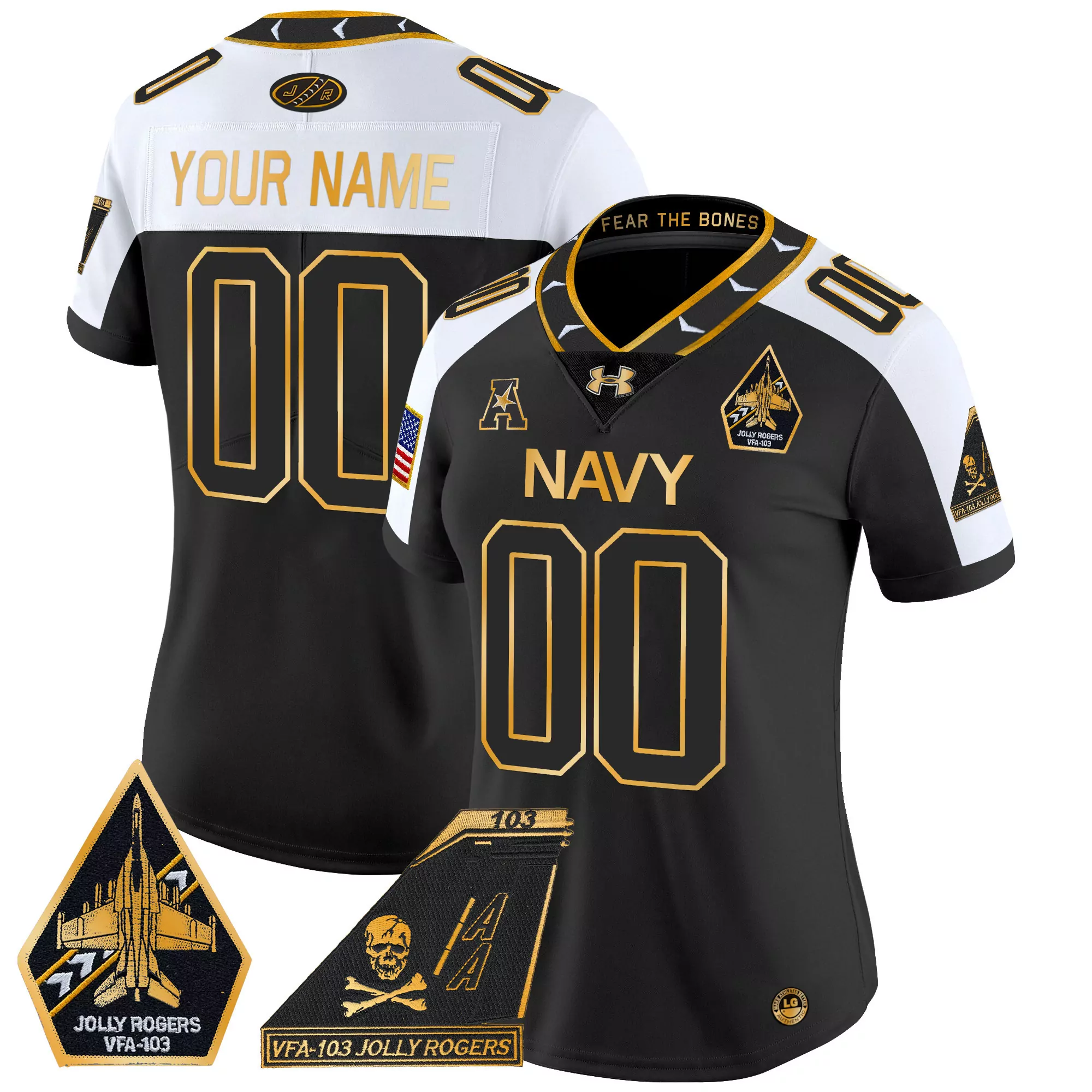 Navy Black All Stitched Jersey Custom Name Patch Youth 2024 Vfa 103 Jolly Rogers