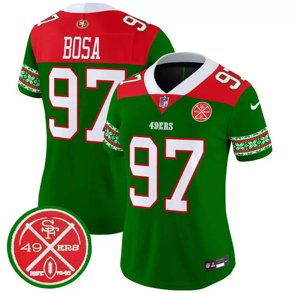 nick bosa green womens san francisco 49ers 2024 christmas vapor limited jersey all stitched